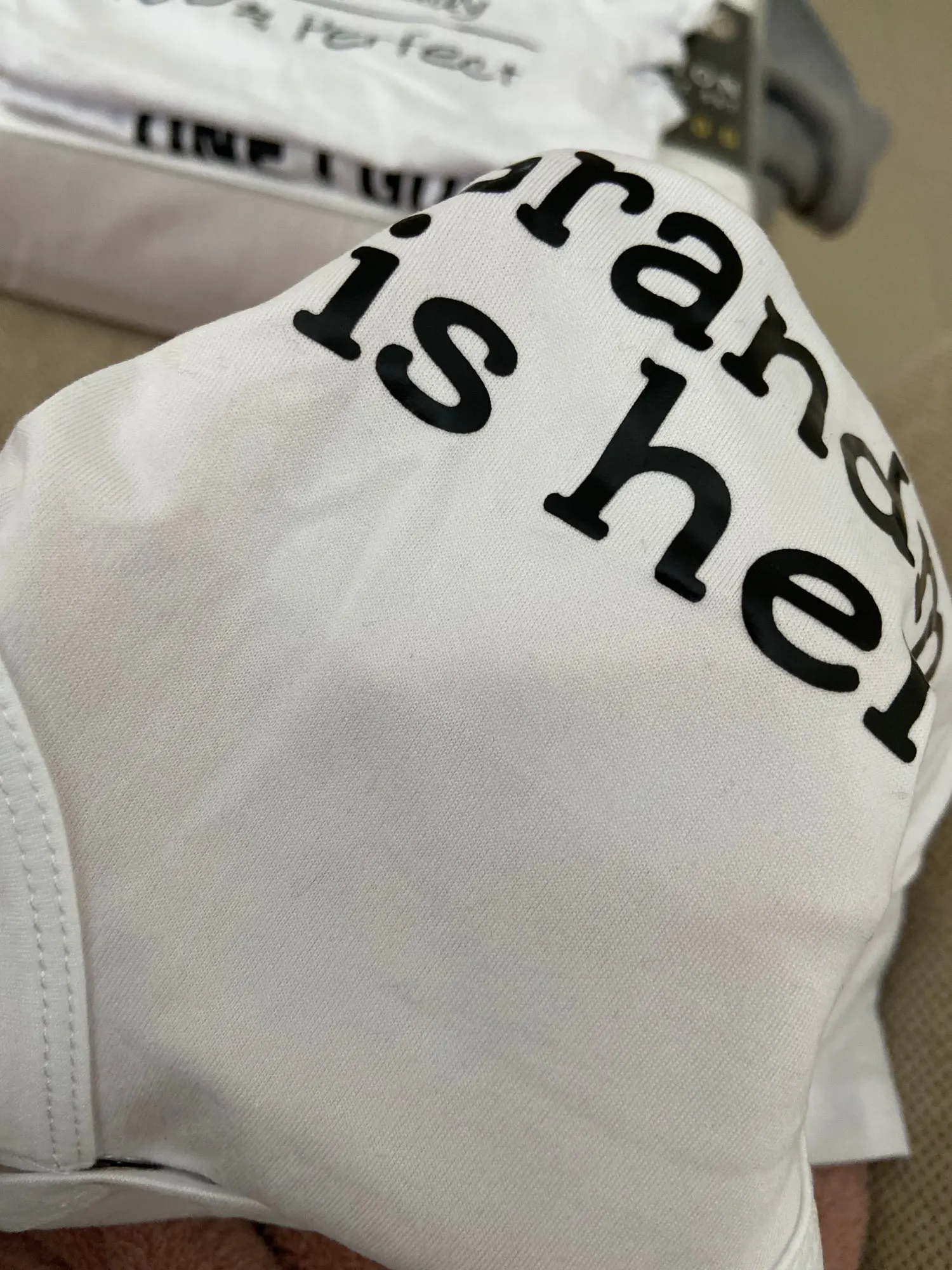 It has not arrived on the estimated date, but the product is identical to the photo the body material is very soft and the letters are very well screen printed, it is well sewn