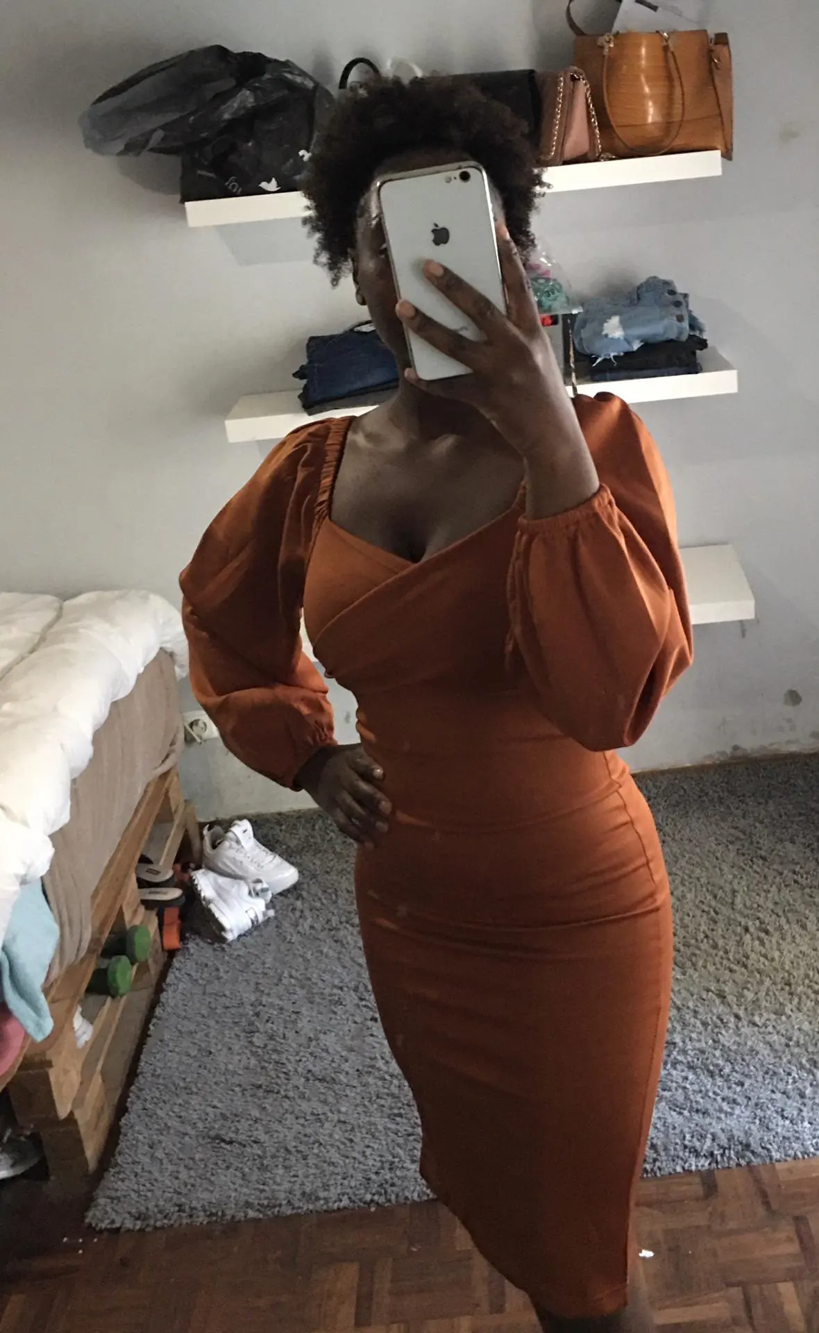 Love this dress! I ordered a S, I’m 1,58cm and 63kg . It has a nice stretch to it as well, I did not even need to communicate with the store.