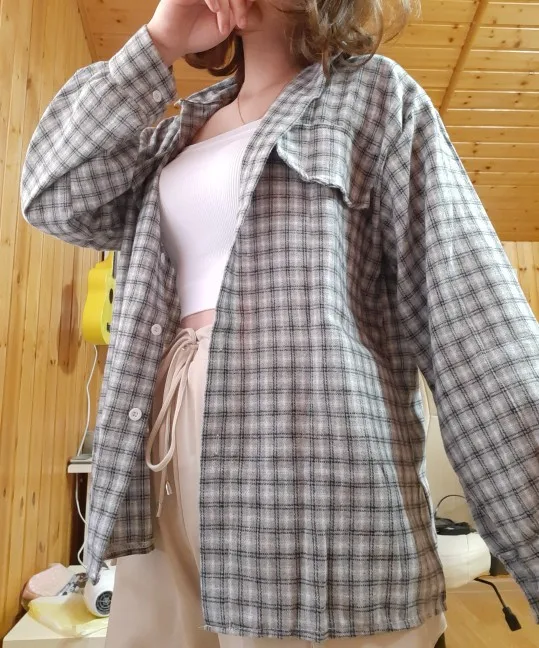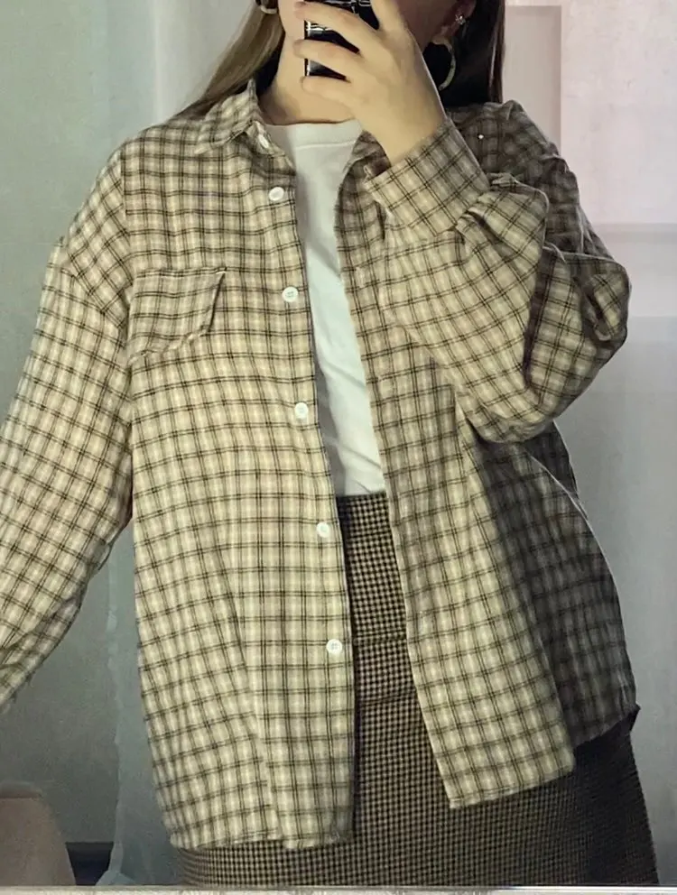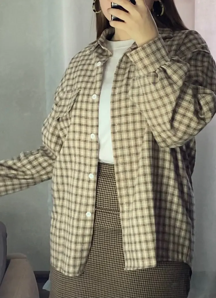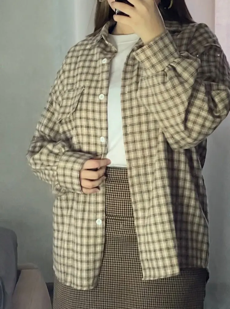 Womens Kawaii Simple Casual Plaid Loose Korean Style Daily Use Shirt Harajuku Cute Student Clothing, Vintage Fashion Classification Shirt