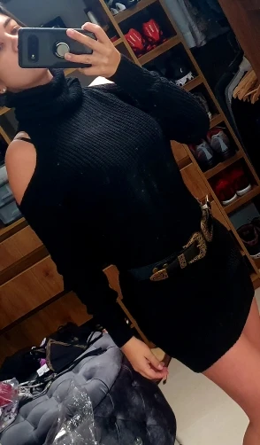 This knitted off-shoulder dress is sure to turn heads! Get it now!