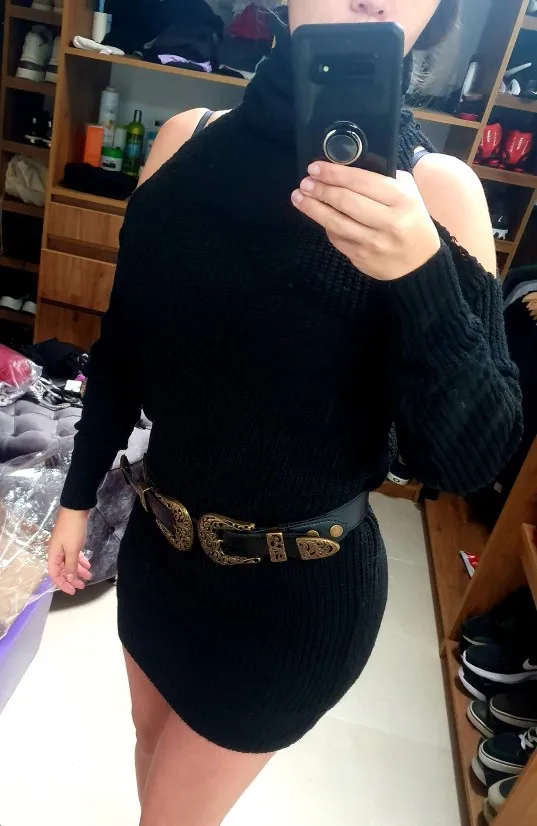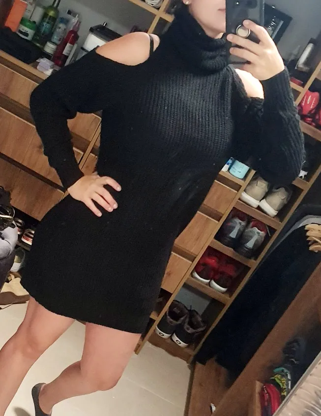 Knitted Off Shoulder Dress Long Turtleneck Sweater Autumn and Winter Fashion