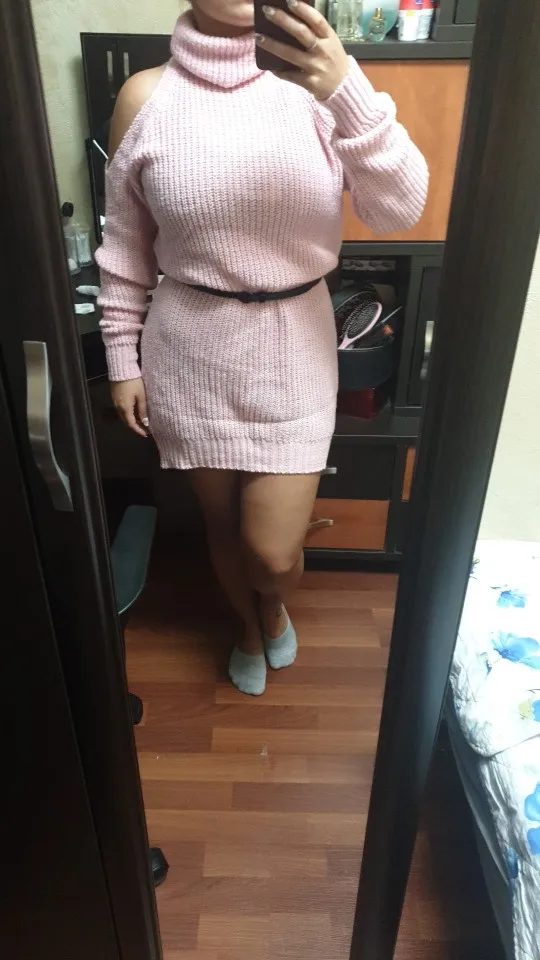 Knitted Off Shoulder Dress Long Turtleneck Sweater Autumn and Winter Fashion
