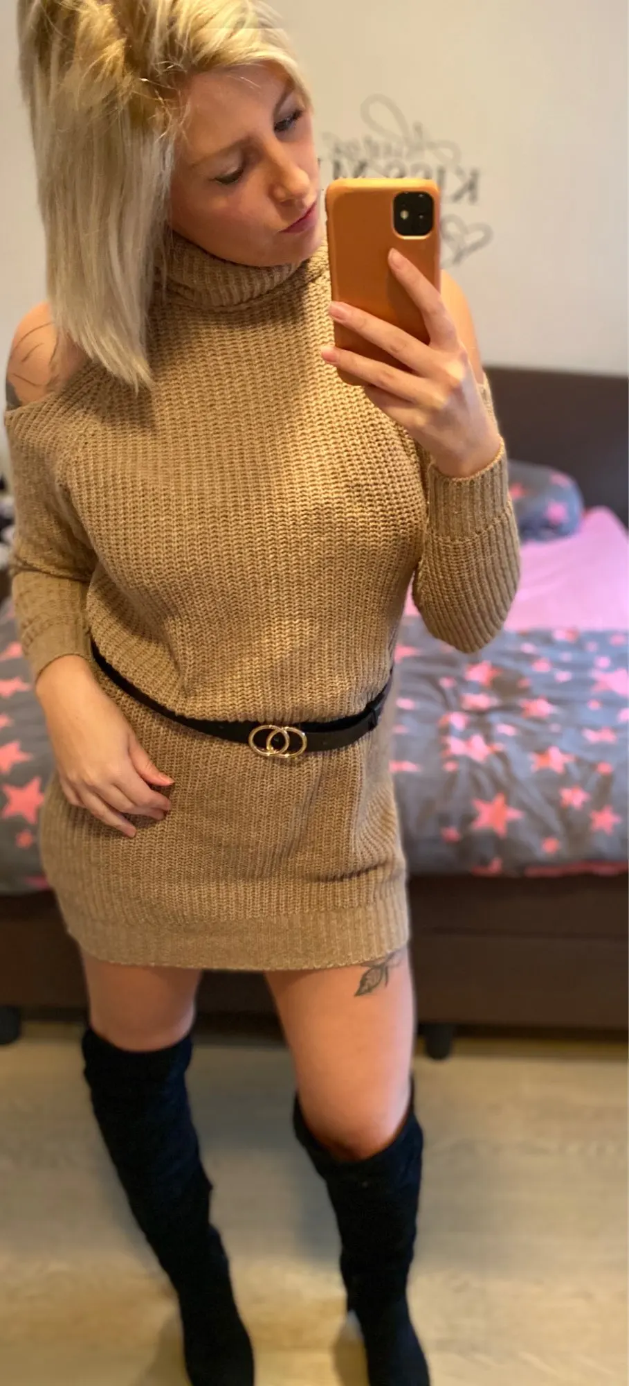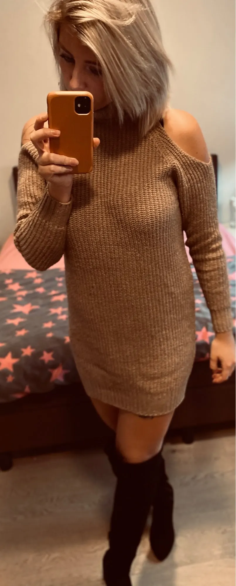 This knitted off-shoulder dress is sure to turn heads! Get it now!