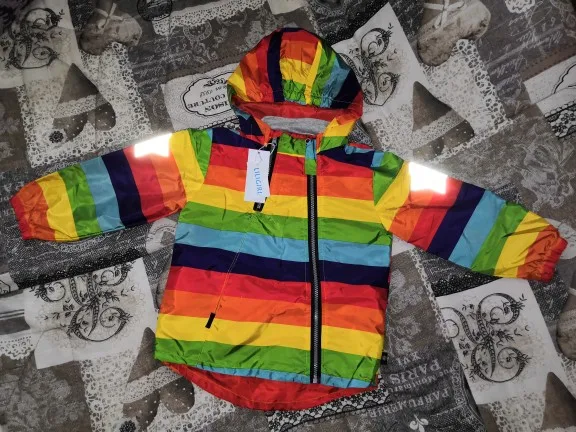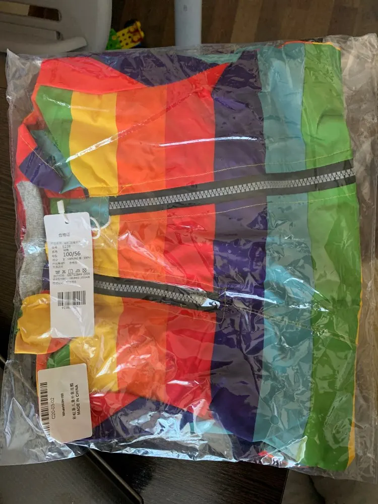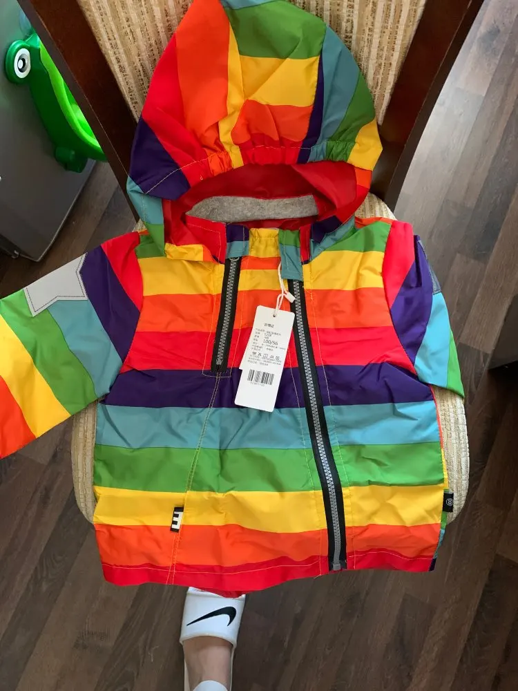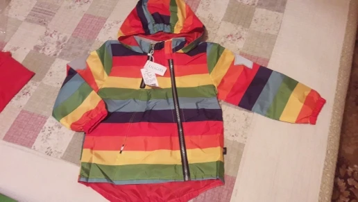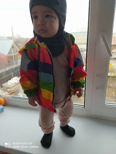 Windbreaker is super, the colors are bright, reflective stars are large, sewn almost 5-ku, slightly failed lines and not stitched part below, but it's not critical. There is a small smell, after washing will go. very satisfied. Took a height of 100 cm, and we wear 86 cm. In the spring we will wear exactly, I will take a photo later on the child.