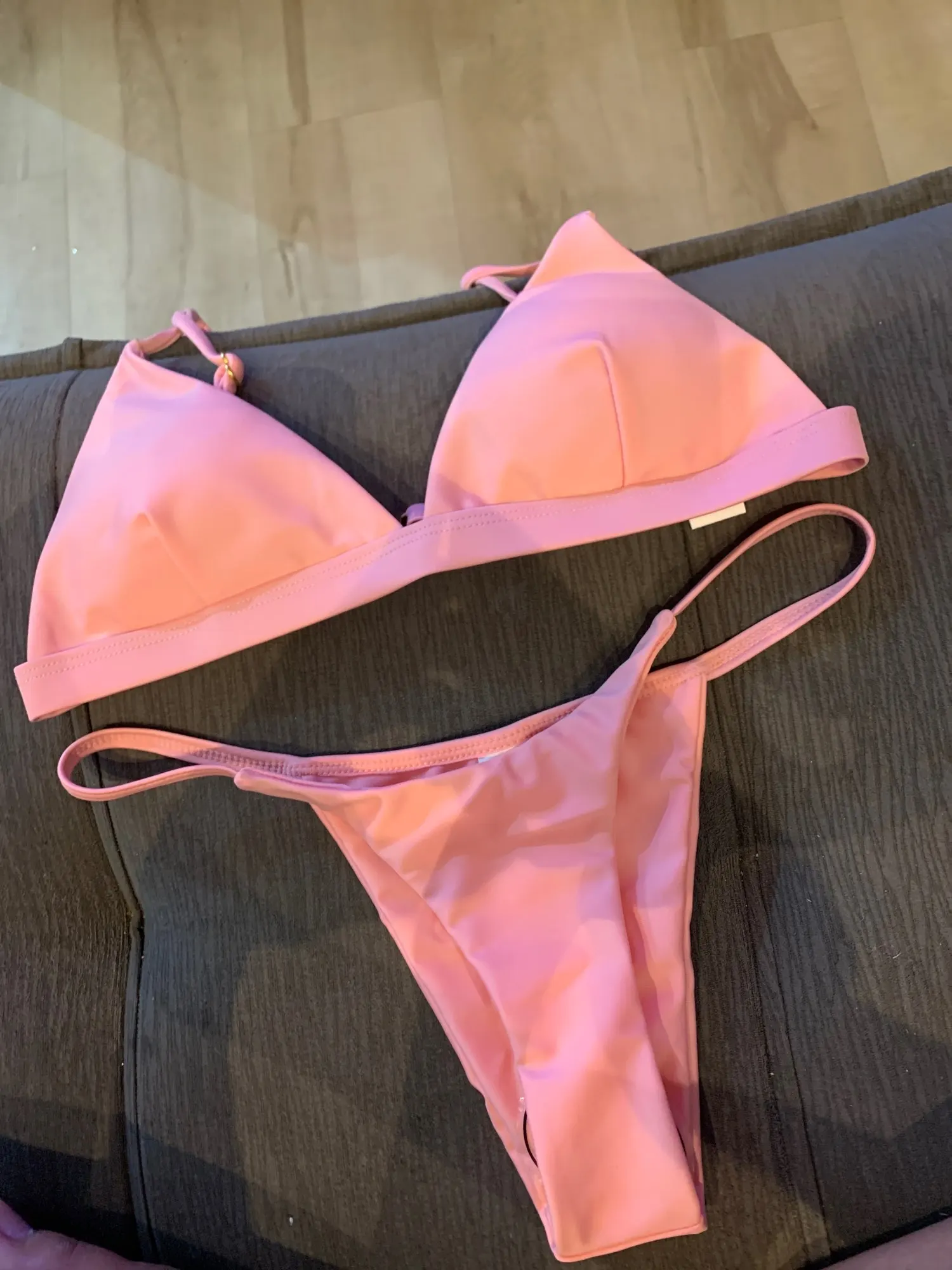 New in 2021 for Women Spaghetti Strap Bikini Set. Solid Colour Padded Low Waist Swimwear.