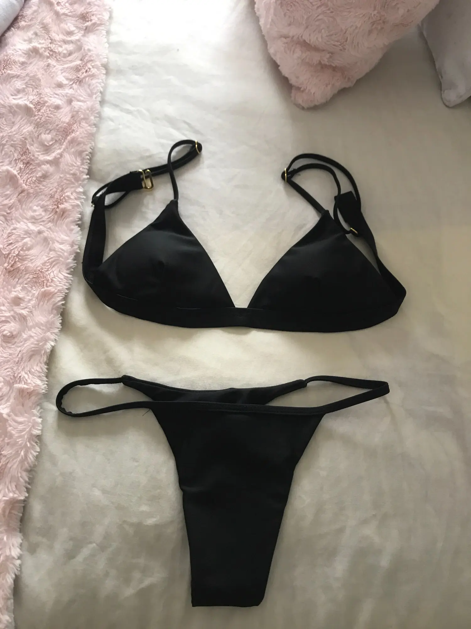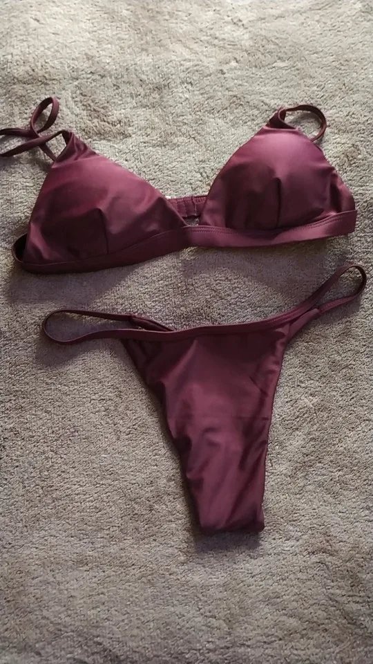 New in 2021 for Women Spaghetti Strap Bikini Set. Solid Colour Padded Low Waist Swimwear.