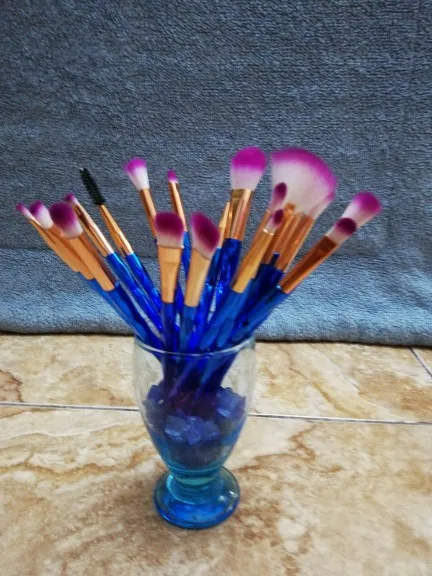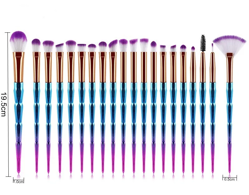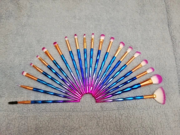 Specification: Hair Material:Nylon Hair Color:multicolor Used with:Powder Basic makeup brush. Handle material:Plastic Size:About 1.3*19.2 cm Easy to use and portable.