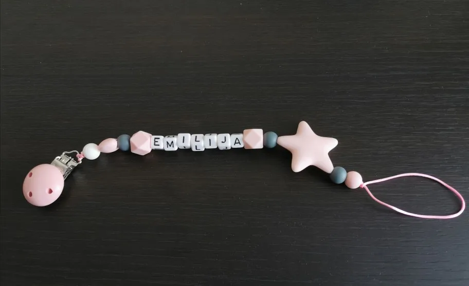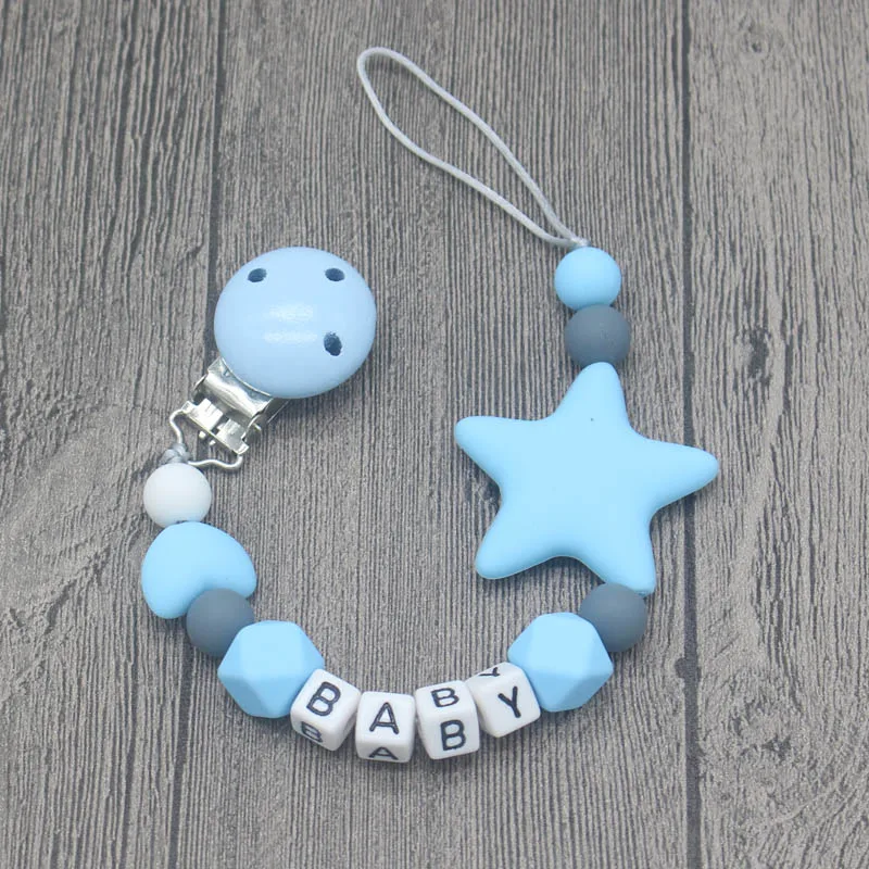 Personalized Name Handmade Pacifier Clips Holder Chain Silicone Pacifier Chains Five Star Baby Teether Teething Chain