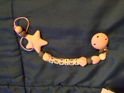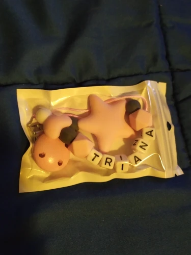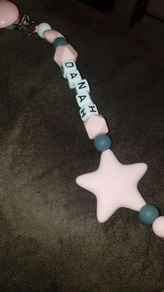 1. We can personalise this with your baby name so please do leave your baby's name when you order and we will make it for you before delivery. :-) 2. If you don't give us a name, we will send it just like the picture displays. 3. Unfortunately, we can only make English names. 4 - 6 letter is the maximum so please accommodate. item type: baby pacifier clip chain Condition: 100% new The material of the clip: wooden clip pacifier for baby The material of the strap: silicone pacifier chain for teether strap Function: baby pacifier chain, soother chain, anti-lost stroller chain, dummy holder, pacifier holders chain, nipple strap for baby. teether toy chain leash, soother chain, baby feeding Package: 1pcs pacifier anti-lost chain in an opp bags Suit age: 0-3Years Size: 30cm approximately Friendly Reminder Note1:1inch=2.54cm 1cm=0.39inch Note2: There might be a slight difference in colour, due to the computer monitor settings Note3: With the difference in the measurement method, please allow 1-3cm in the size deviation