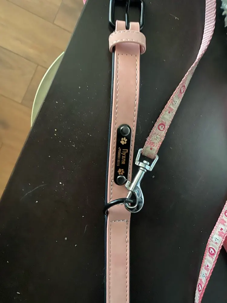 Very beautiful collar, good material. The size immediately approached. We also like the dog.