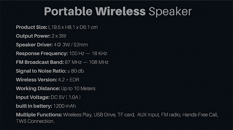 Portable Bluetooth TWS Enabled Loudspeaker