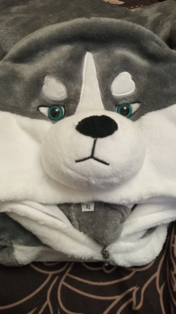 thank God found. Quality is good, corresponds to the description. Front and on the Pope zipper, the hood inside is sewn, soft warm. Husky's face is very beautiful, plausible. Only one did not like the elastic band on the pants and sleeves synthetics a little scratched, hard fabric. Otherwise everything is fine. The store was in touch all the time, there was time lost did not answer, but then unsubscribe anyway. I recommend the product and the seller.