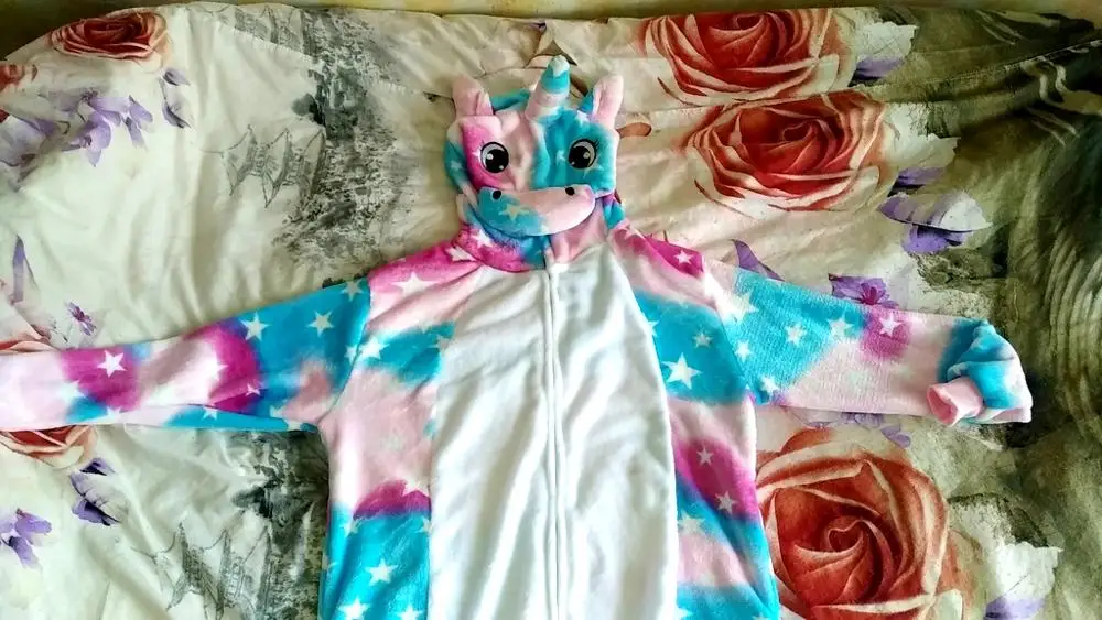 New Winter Women Men Unisex Adult Cute Cartoon Onesie Animal Pajamas unicornio Unicorn Stitch Kigurumi Flannel Nightie Sleepwear 100% new brand & high quality This is super comfortable! Theme: Anime characters Material: Flannel Gender: Unisex Package Includes: 1 * onesie (without shoes) All styles have a zip at the hips!