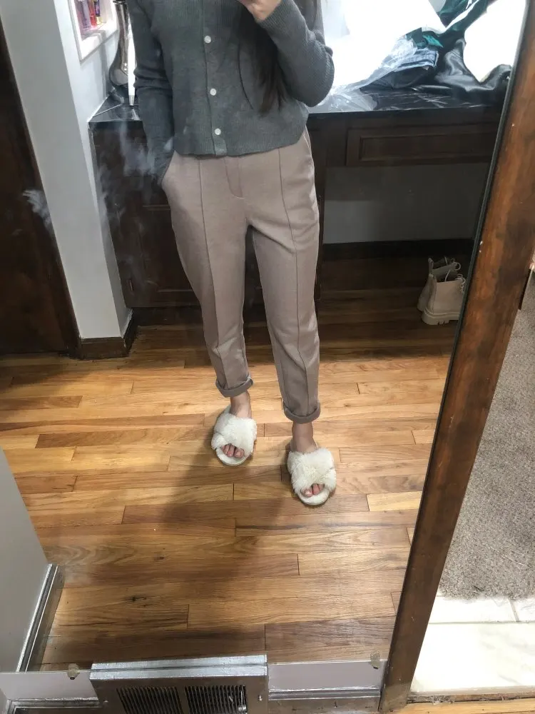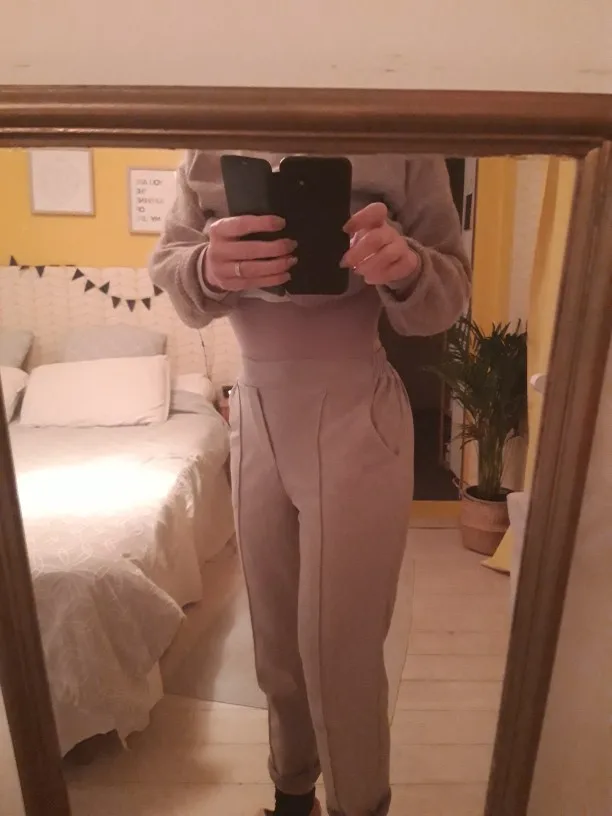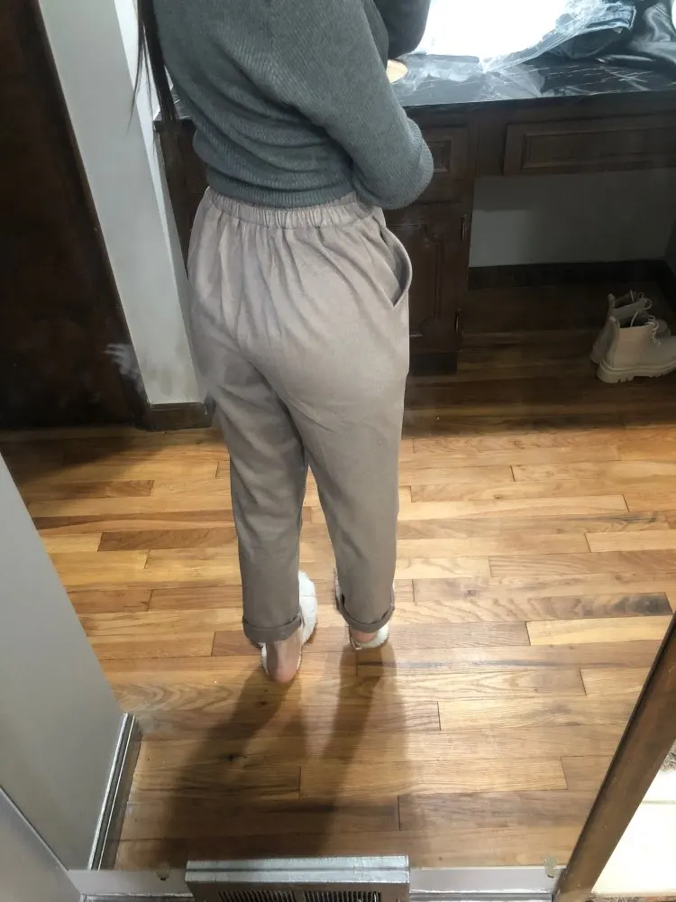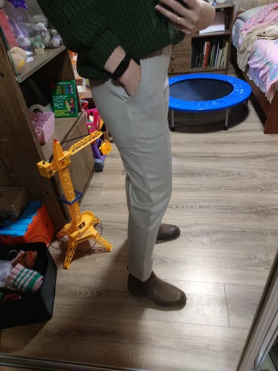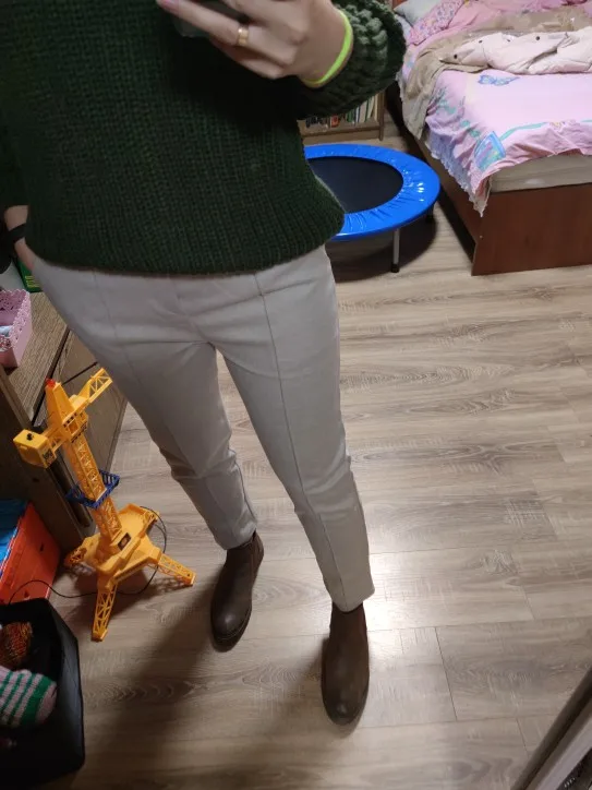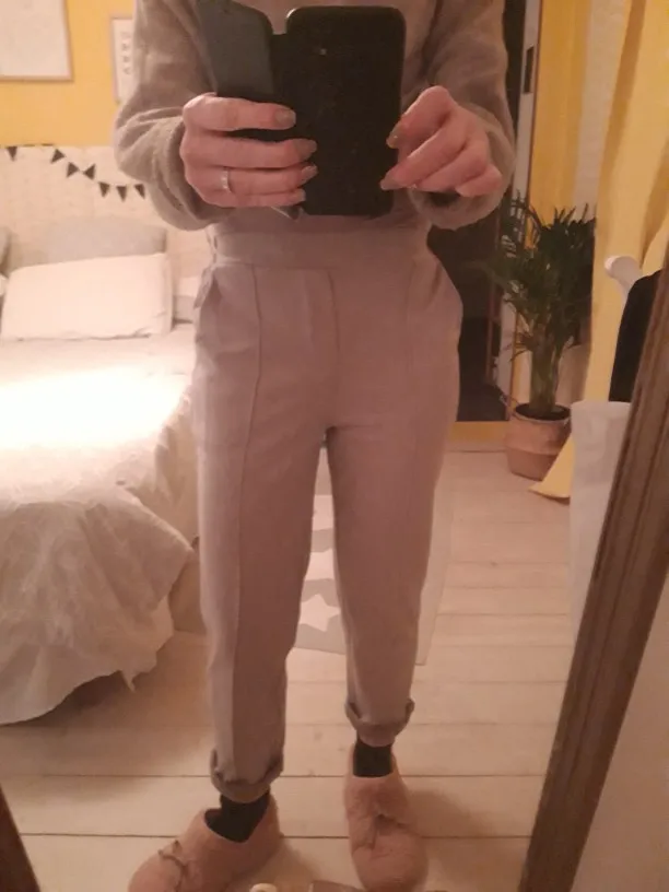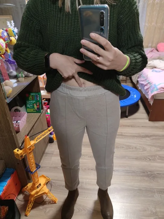 Soft trousers, comfortable. Sewn arrows, pockets. High landing. Length on the ankle. The length of the product 95, waist 33, behind the elastic band, stretches to 46 approximately, the volume of the hips of the product 48, stretched yet! On my OB 100 village is good, without unnecessary folds, but with a margin of more. In short, excellent autumn-winter trousers. Thank you