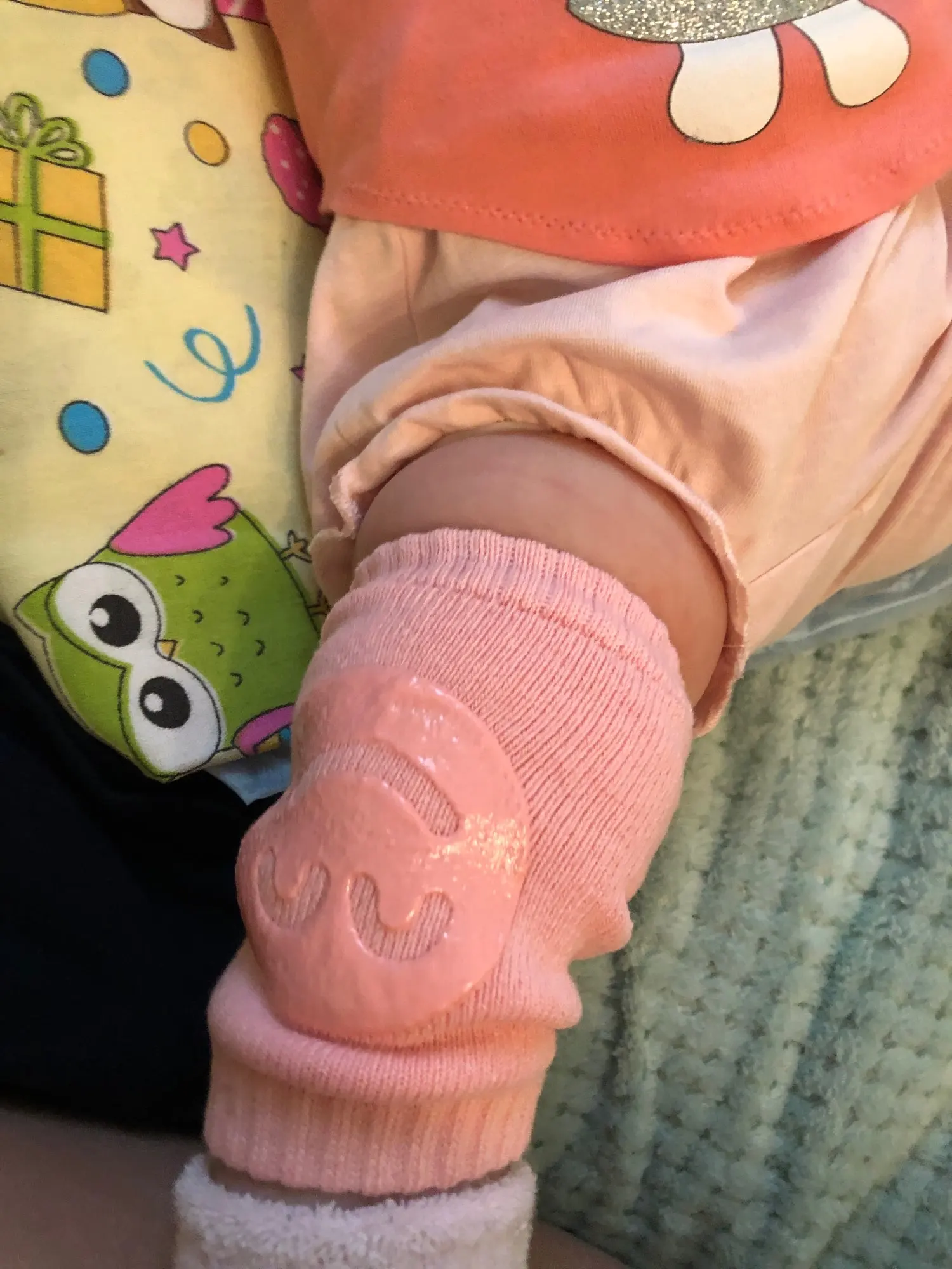 Delivery was just over a month. Knee pads are good. The baby 3 months old straight passed I think when we start crawling there will be little!