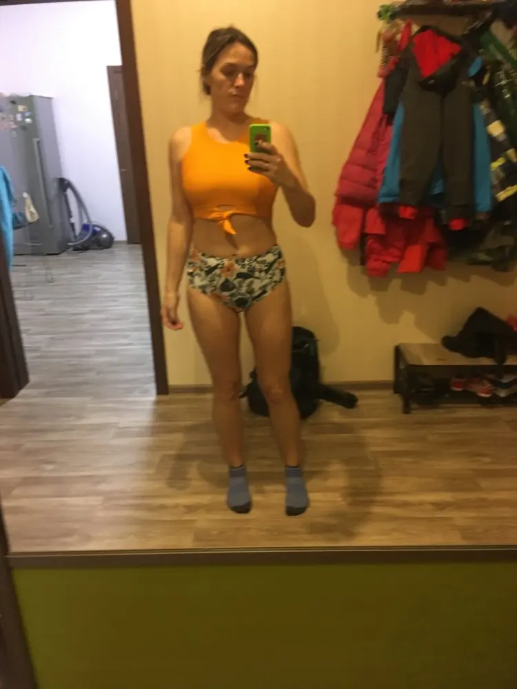 Swimsuit of good quality, the fabric is pleasant, sewn well, inside the lining, juicy bright, 100% satisfied. I bought with my daughter to go to the water park. Took on height 162 cm, 59 kg, M, usually wear 44 size, slightly free, chest 4, girth 75, not butt, I will wear it for sure. Came quickly, thanks to the store!