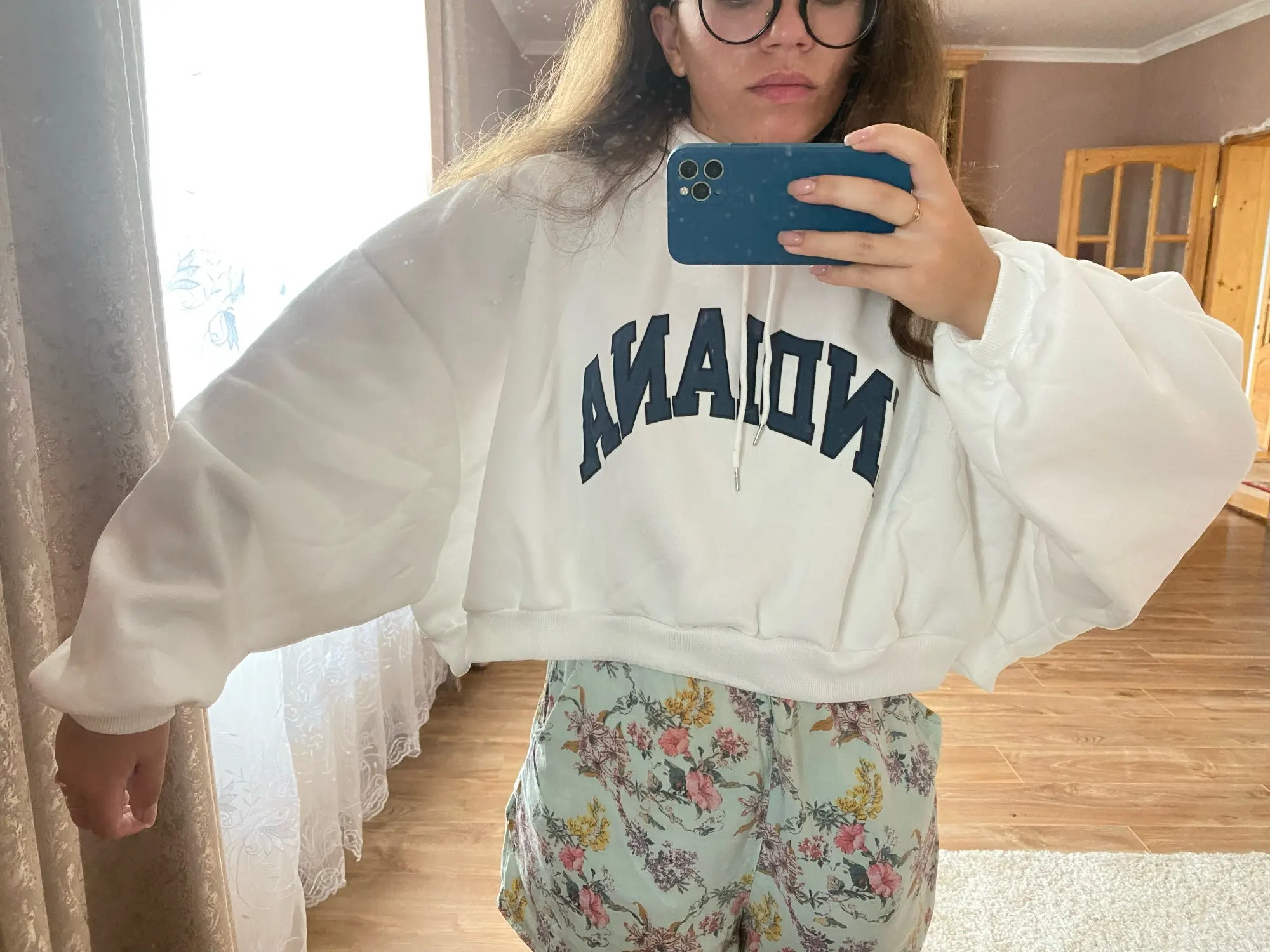 оверсайз и материал 10/10 ; непонятный воротник который был сразу отрезан -1000/10 ; маленькие синие пятна тоже не оч надеюсь со стиркой уйдут. вердикт экспертов: крутышка