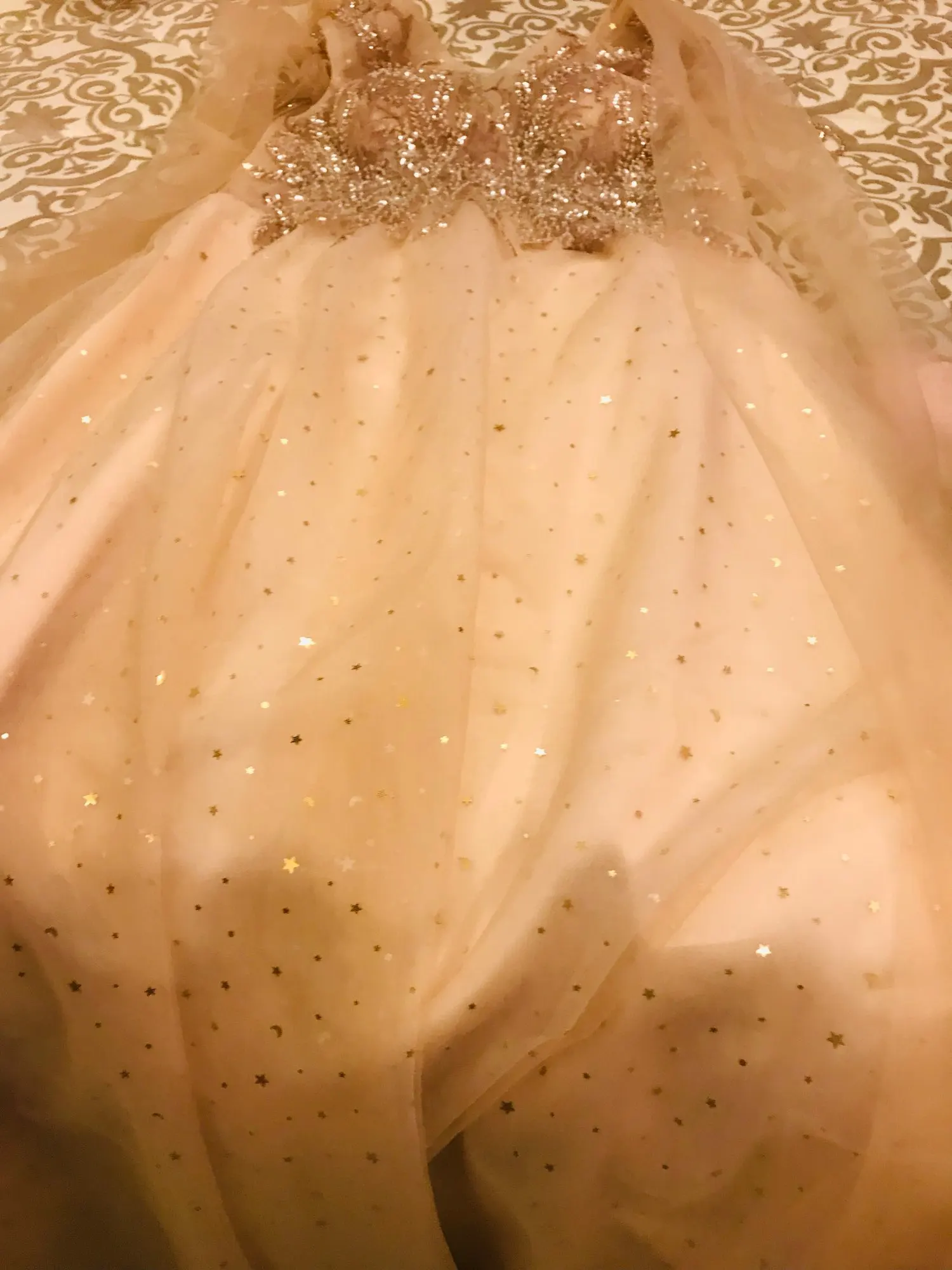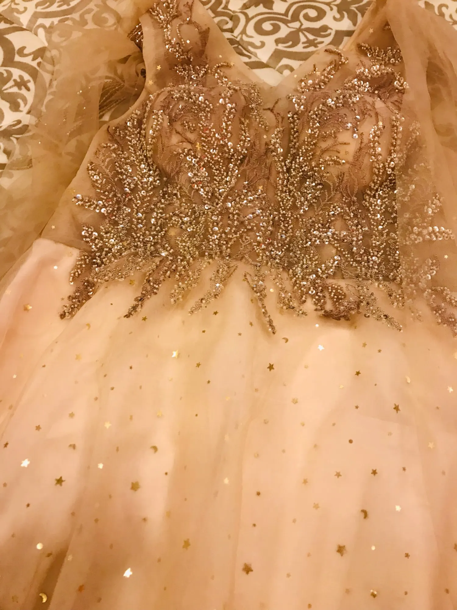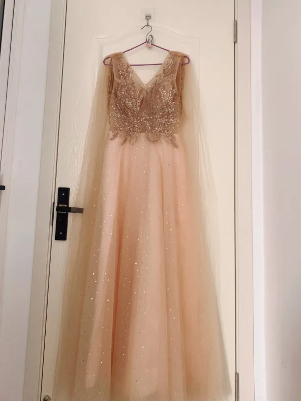 Luxurious prom dress with a cape that makes you feel like a celebrity.