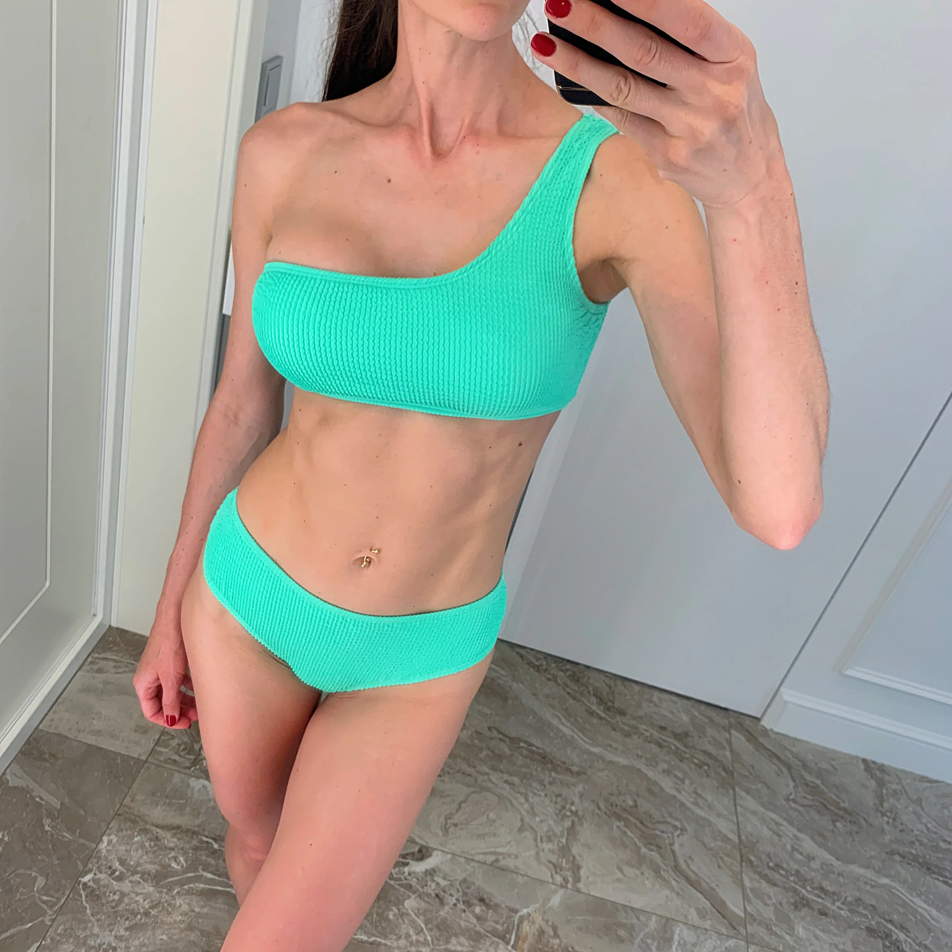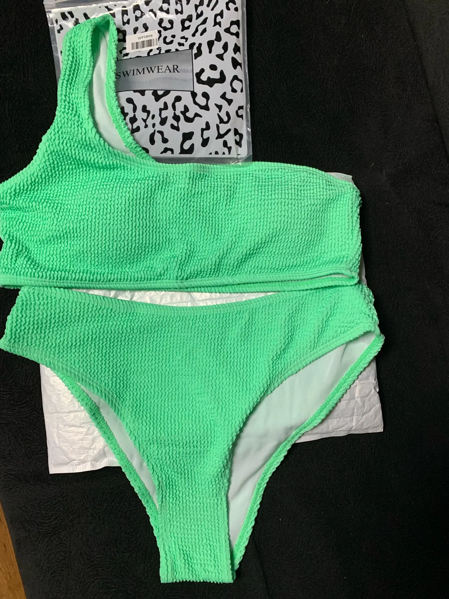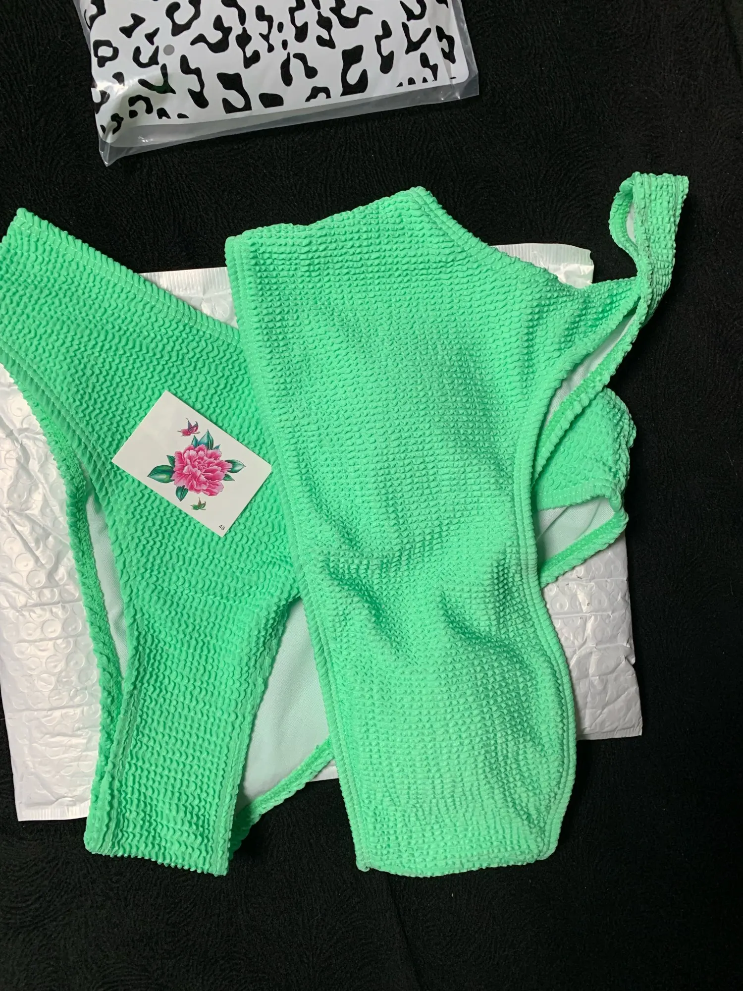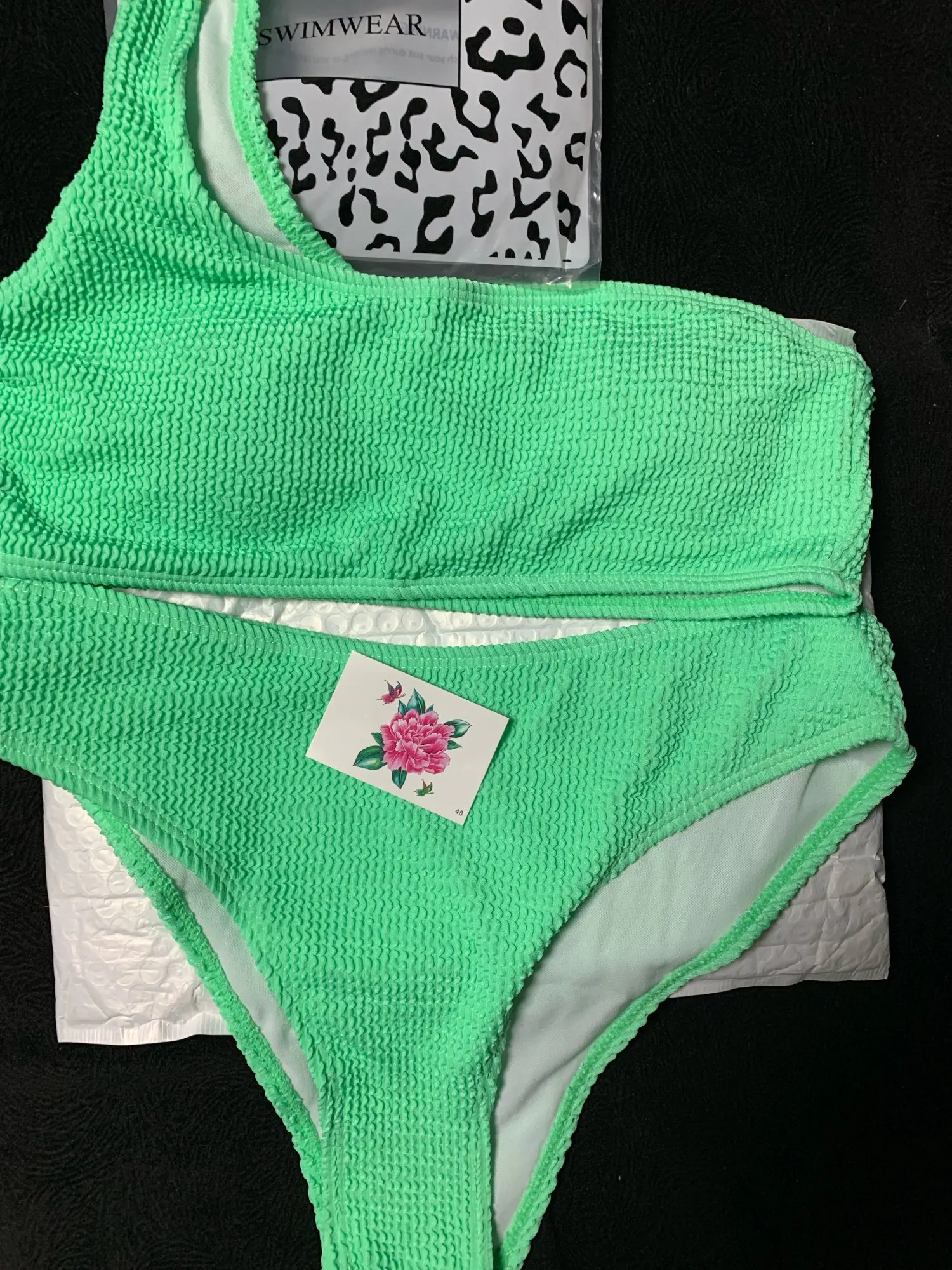 Sexy One Shoulder Bikini Textured Swimwear Women 2022 High Cut Swimsuit Women Bathing Suit Solid Brazilian Bikini Set Unique design one shoulder bikini set for your next beach trip.