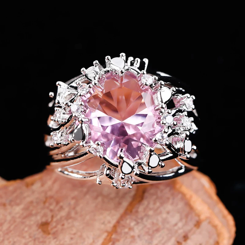 Beautiful Pink Stone Ring Jewelled Silver Ring Band for Women