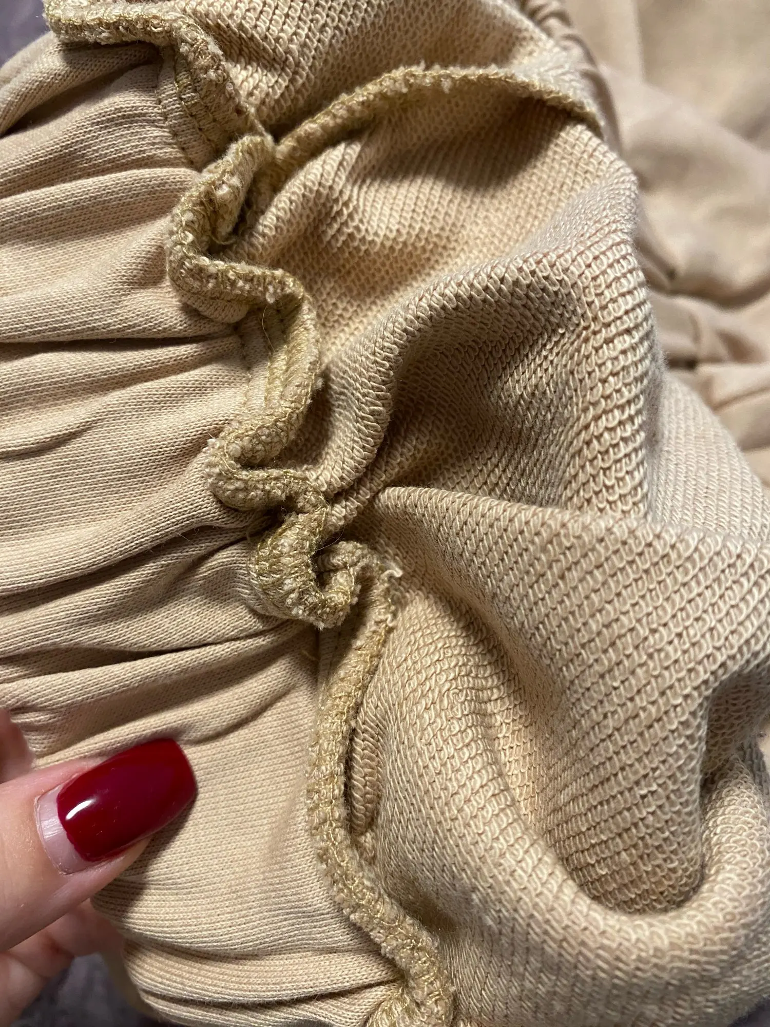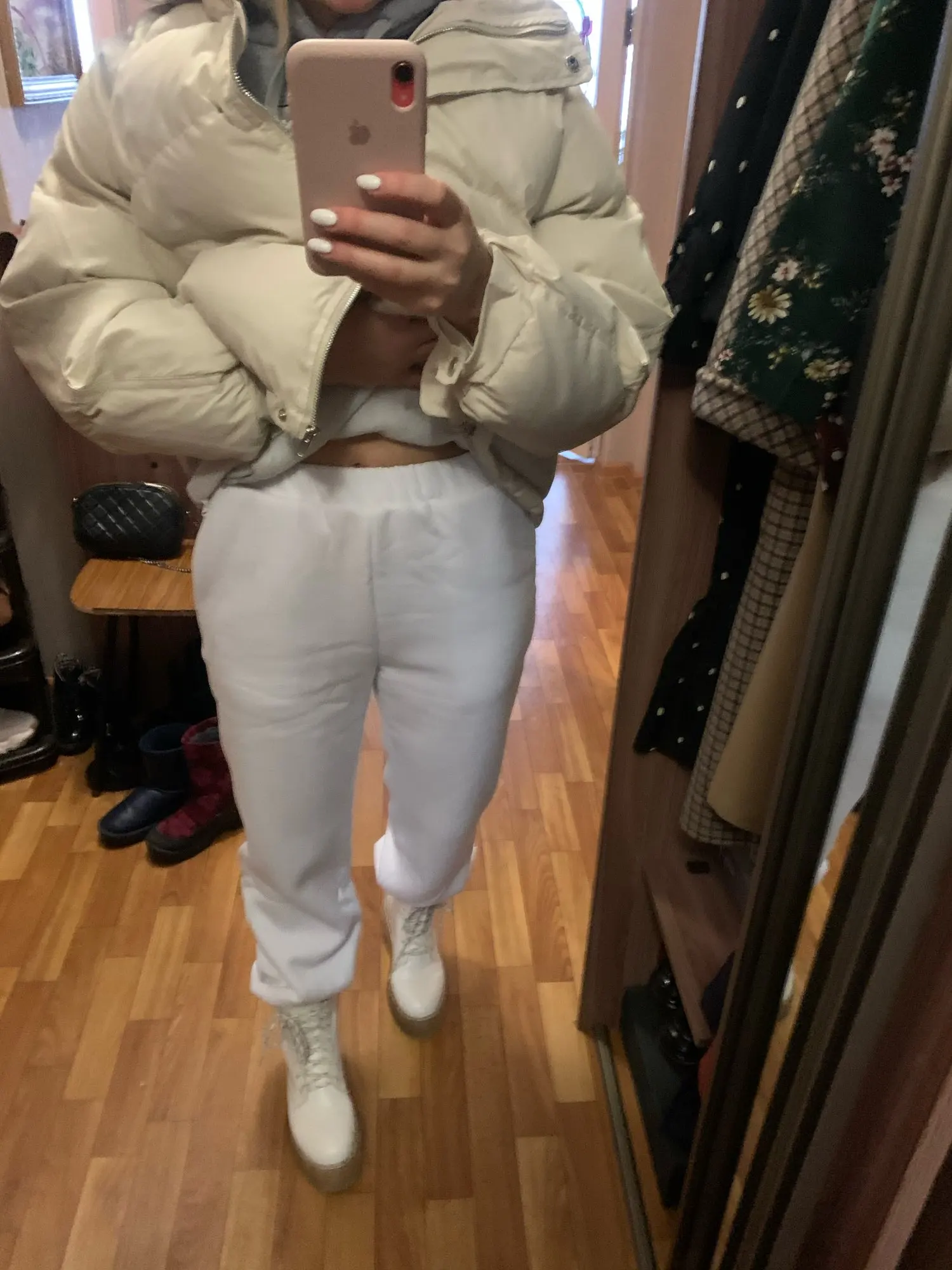 The fabric is soft, dense, warm. The seams are even, well treated. At 46 size L were great in the hips.