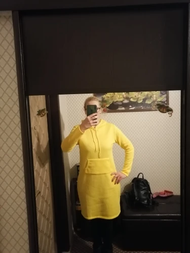 The dress is a class color like a curl-, yellow bright juicy!! On my RR 48-50 height 1.76 XXL The village is excellent, hips 105 almost vbtyag, free! Warm, frost-25 with a normal down jacket is warm. Fleece fabric is pleasant to the body!! The hood for the view, as an addition))) came quickly just under the next cold!