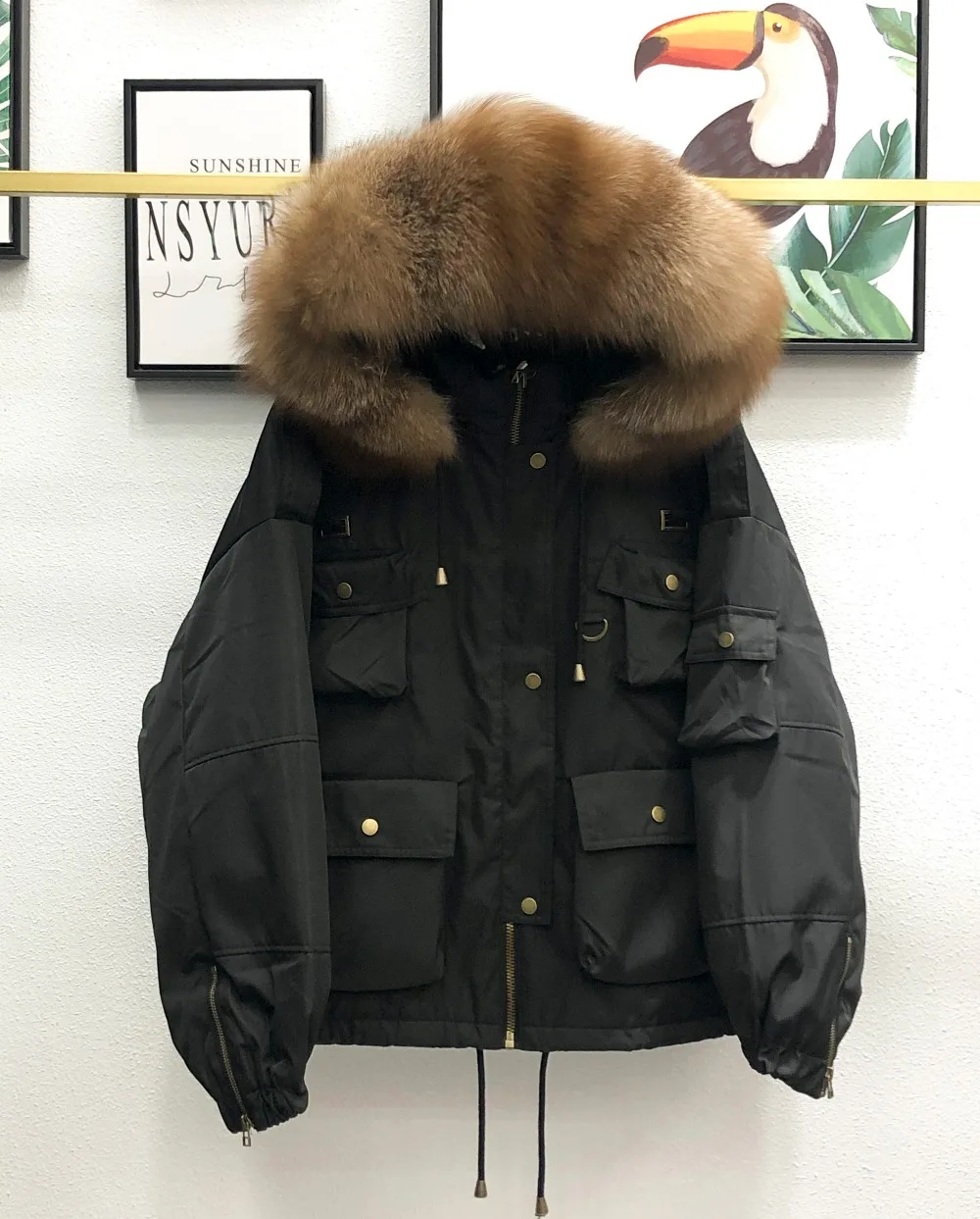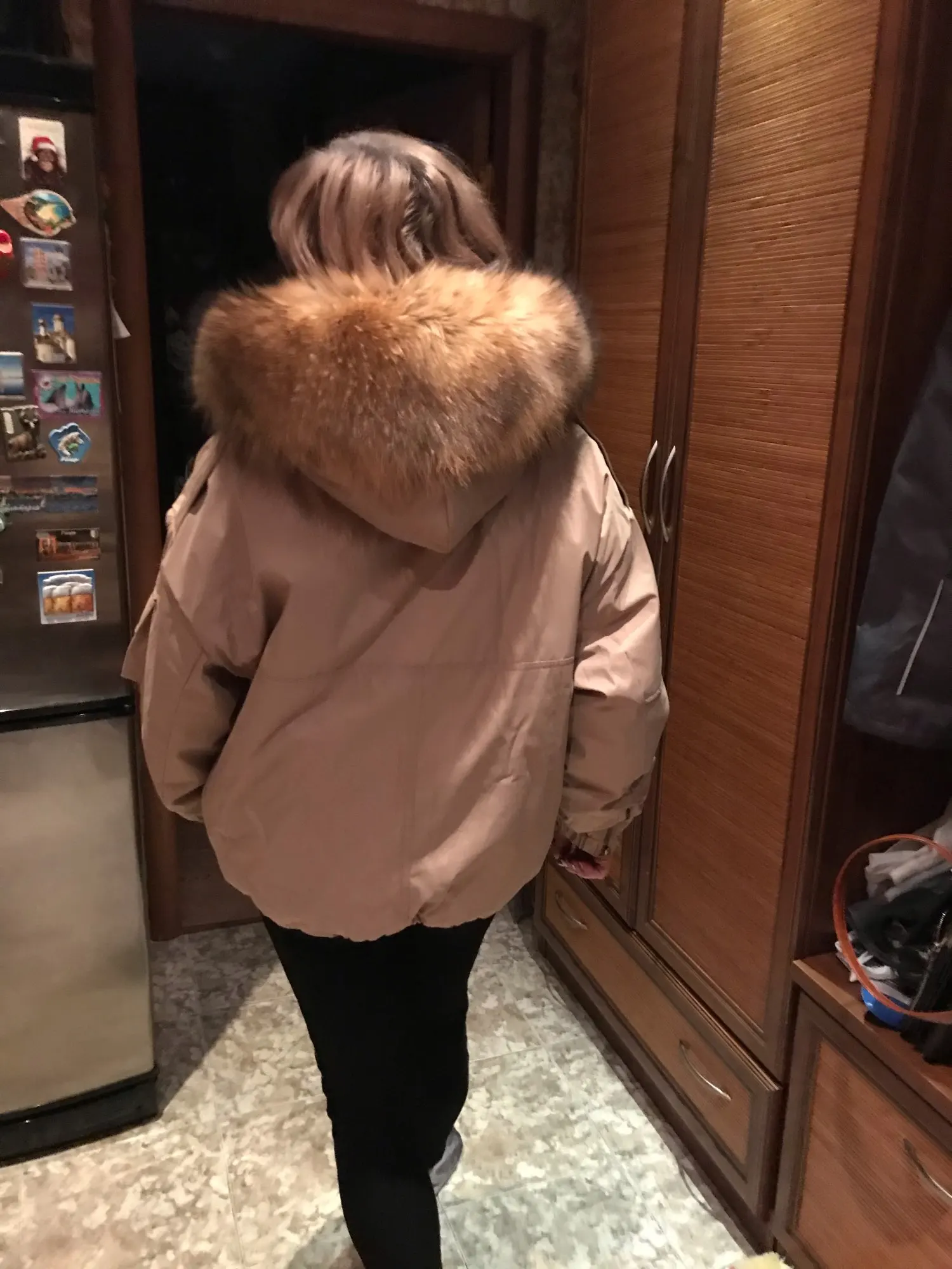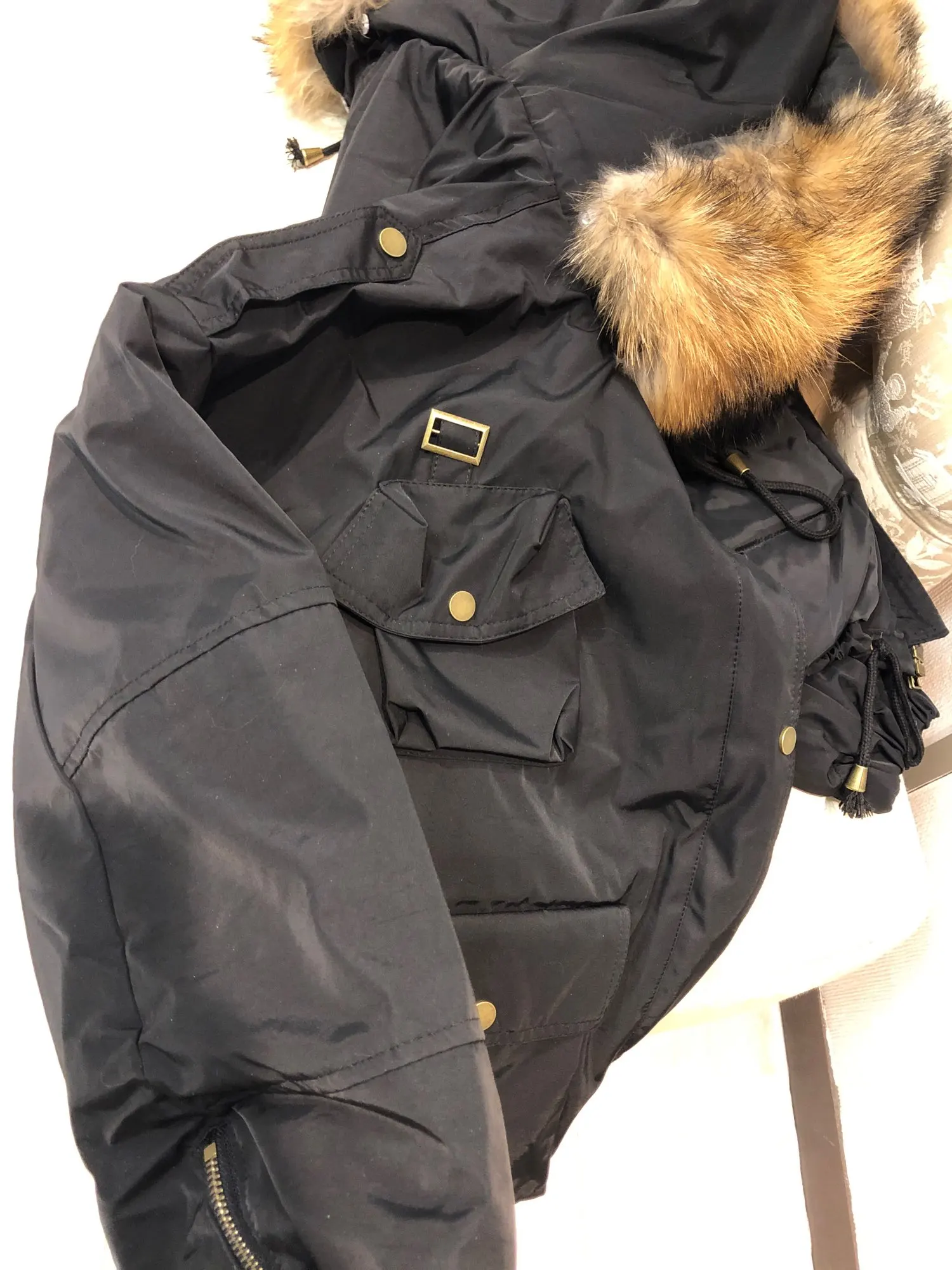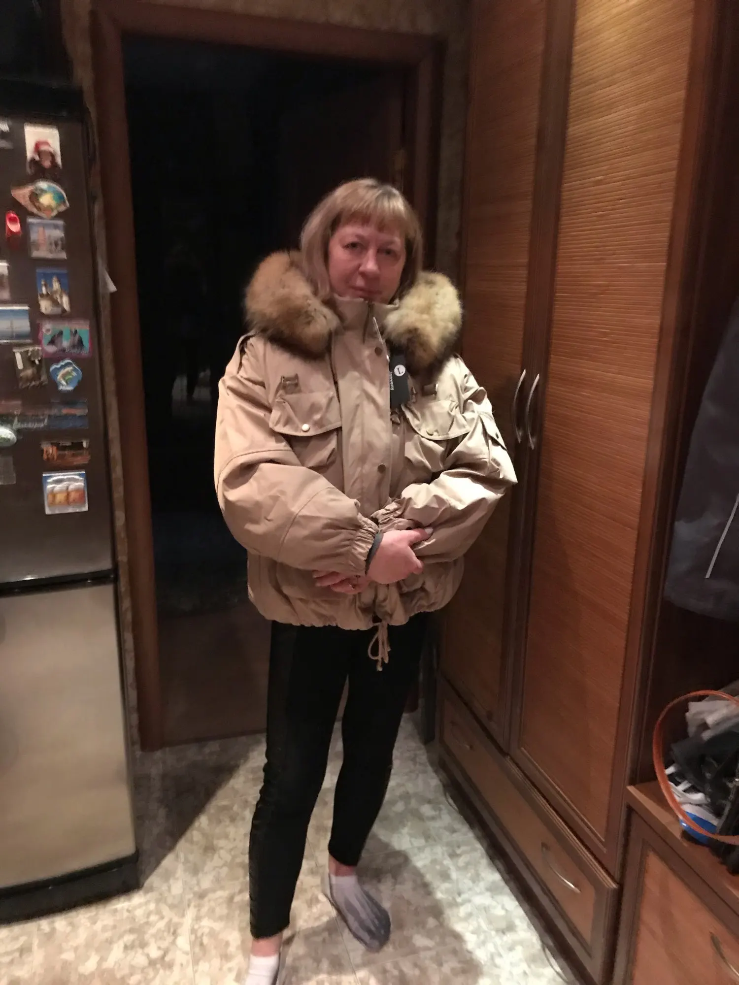 Jacket class!!! At 48-50 Russian-L A little more! Warm, light, cool collar! Delivery to Moscow for about three weeks! On the growth of 164 norms!! It was possible to take M!! Good quality, the seams are good, the lock walks easily!!! The store is great! Long shipping!!!! There were wishes on the collar-everything is fine! On another site 1000 rubles cheaper!! Thank you!!!!