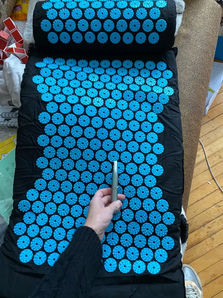 I'm happy! I'm delighted! When I came to Russia quickly. I'm happy with the rug itself. The pillow helped out already and I now love it. I have cervical cancer and often muscles are in spam. In three approaches lay on each side of the neck and that one! My migraine passed and the third day does not appear. I continue to lie down and put children. Since they play sometimes in the phone burned down and then when I wink say hurt in the neck then in the muscles of the back. In general, the thing is magical! I did not regret that I bought it! Thank you seller! Good sales! Love this store sea-malls!!!