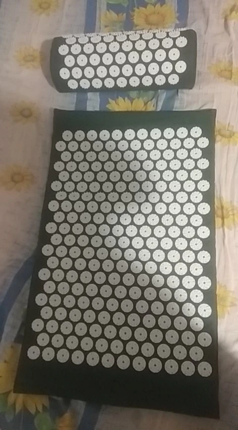 Specifications: Material:cotton+pvc+sponge Mat size:67*42*2cm Pillow size:37*15*10cm ABS buckle: Mat with 230pcs 27 needle buckle Pillow with 72pcs 27 needle buckle Color:black,green,blue,dark green,purple
