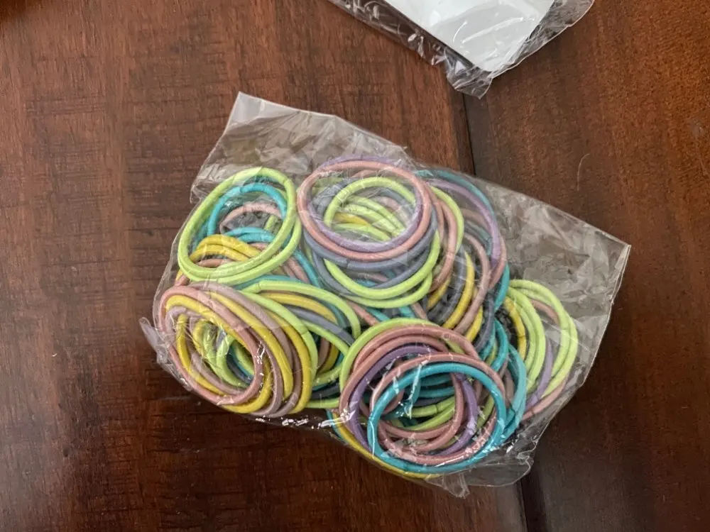 Great elastics, priced at a value compared to Big Box stores in the states. Did not count, looks like 100. Kids love it. Will purchase again