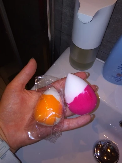 Sponge came quite quickly, somewhere in a month, together with a stand, 2 different colors, one purple, another peach, material and quality is satisfied, I advise the store.