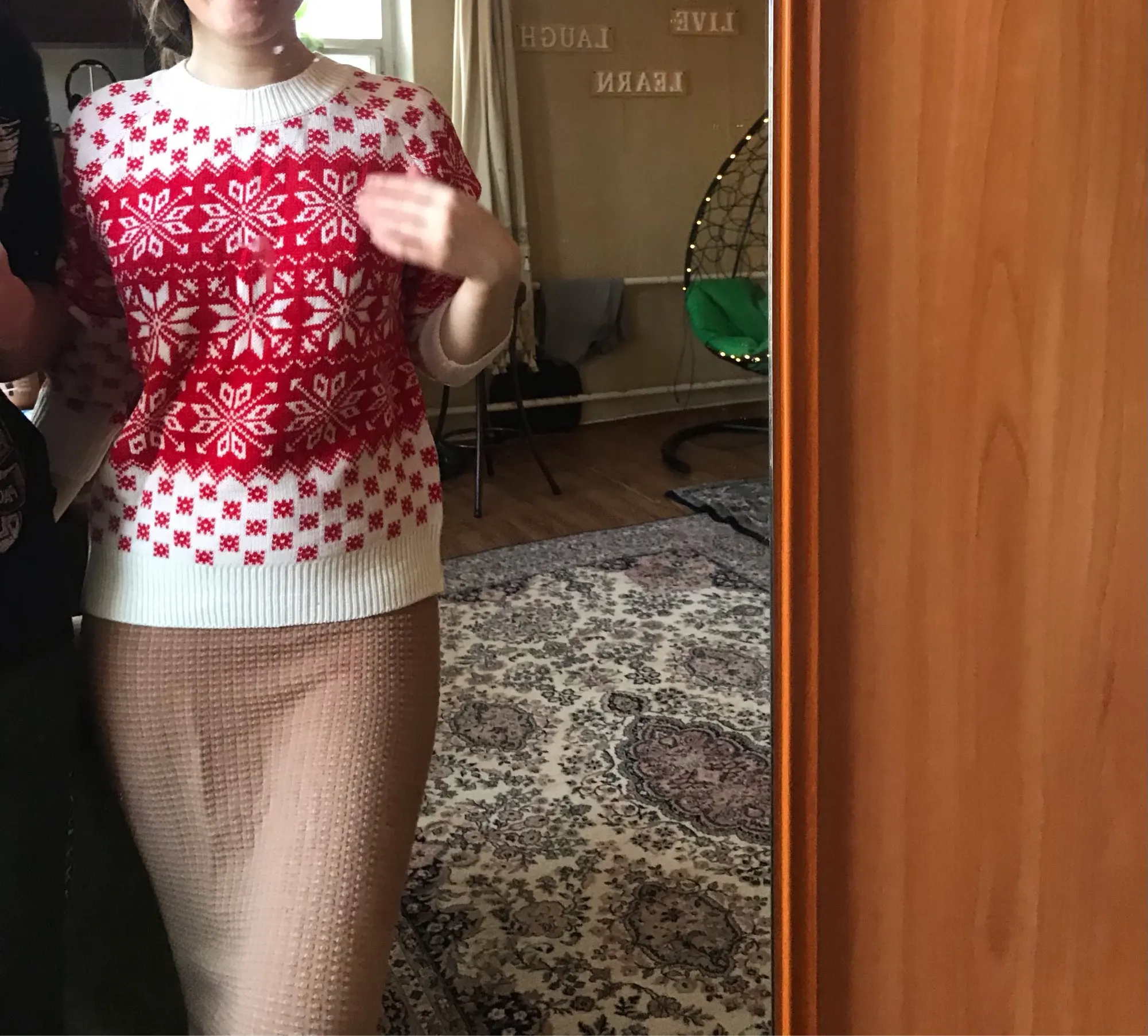The sweater was very pleased. Just what you need for the festive season. Surprisingly qualitative. Wife wears every day for a couple of hours for mood. Perhaps next year we will take another similar one from the same store.