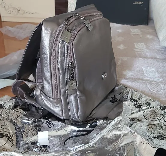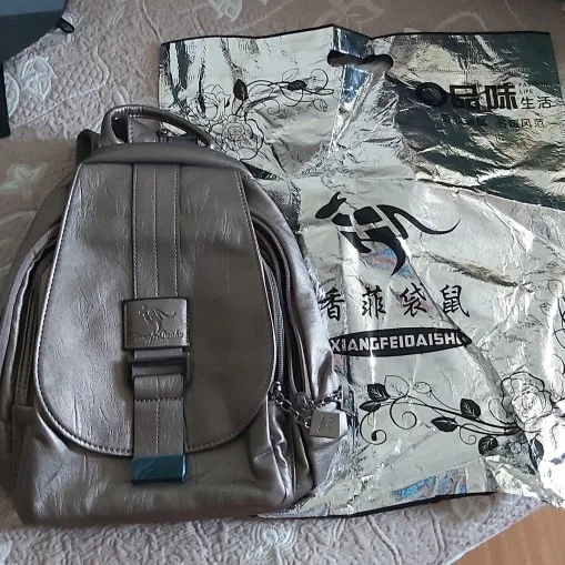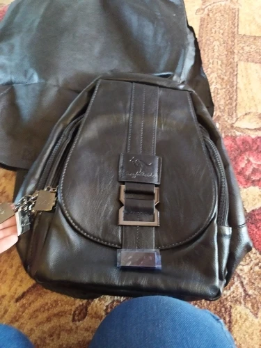 The backpack is great. Came in a branded bag and two more. Qualitatively executed, the accessories are excellent. Branded logos with kangaroo. No smell. The lines are even. Leatherette soft, very similar to the skin. But such a long delivery to Russia is 58 days. In the rest everything is super.