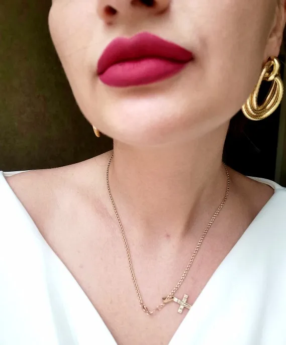 I apologize for the uneven application and contour of the curve, I wanted to try and did not want to dig for a long time. Lipstick chic. In one layer such complex colors lay very well, a little spit. Barely felt on the lips, almost did not pull them. Shade 03 smells of chocolate, 13 smells of something medium between cherry and chocolate. The applicator is comfortable, the texture is gentle, the distribution is as economical as possible. Shades on the packages look slightly brighter, on the lips darken when drying. The packaging is minimalistic, came in individual brand boxes, the parcel was not tracked in the territory of the Russian Federation. It came less than a month. I recommend to buy!
