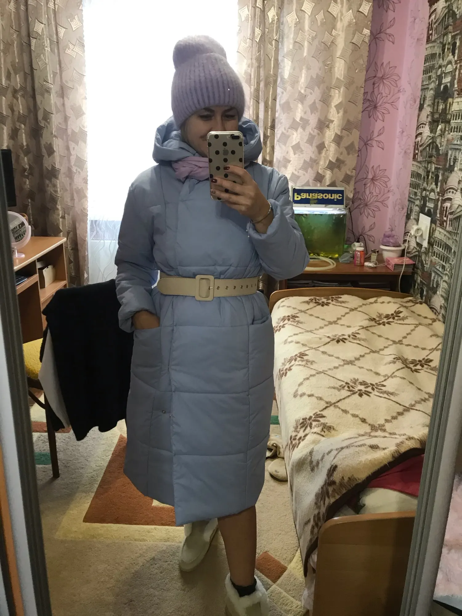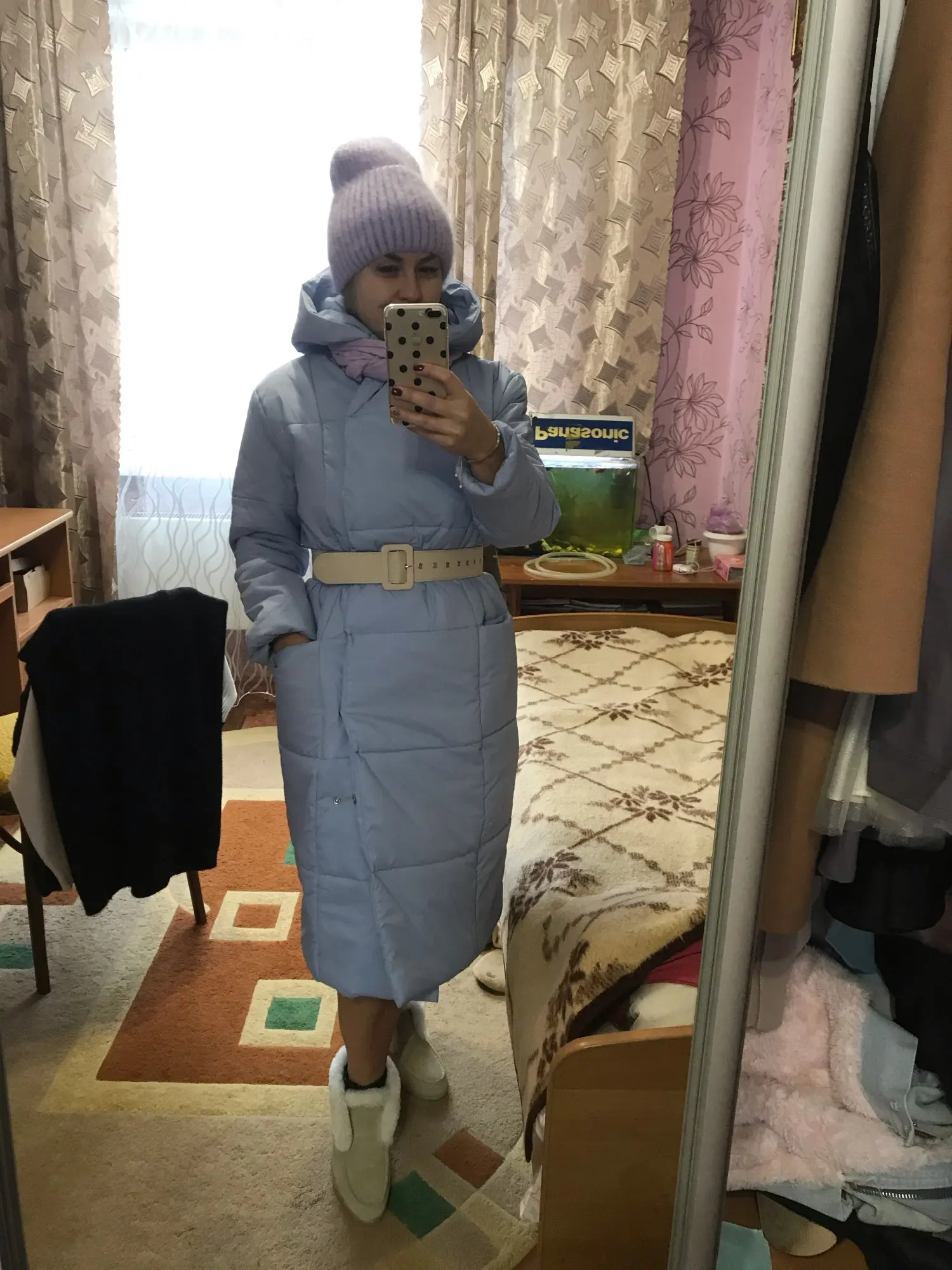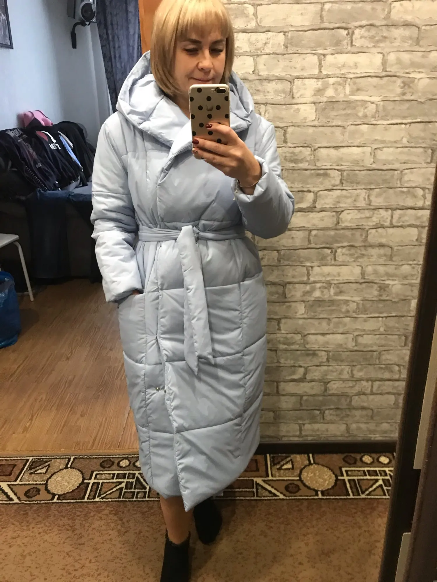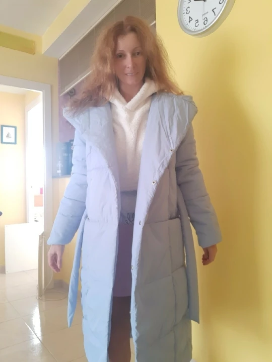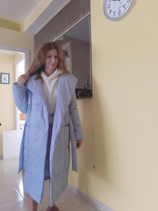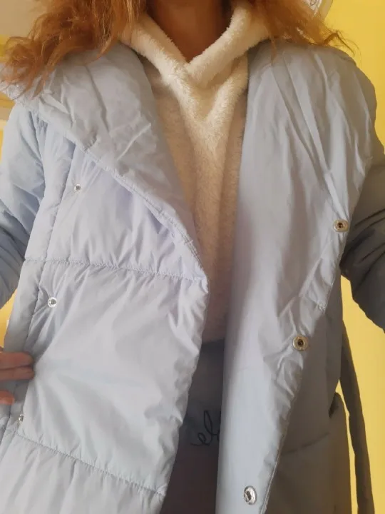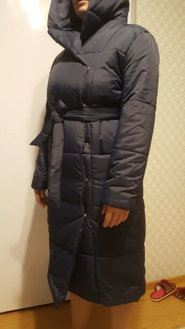 Very cool down jacket, goes size in size, at its 44th ordered s. Long sent, but came somewhere in a month after sending. Down jacket is light, fastened to the buttons, in the kit there is a belt, with a sweater you can wear up to-20 Frost quietly. Quality is very satisfied❤& Middot;