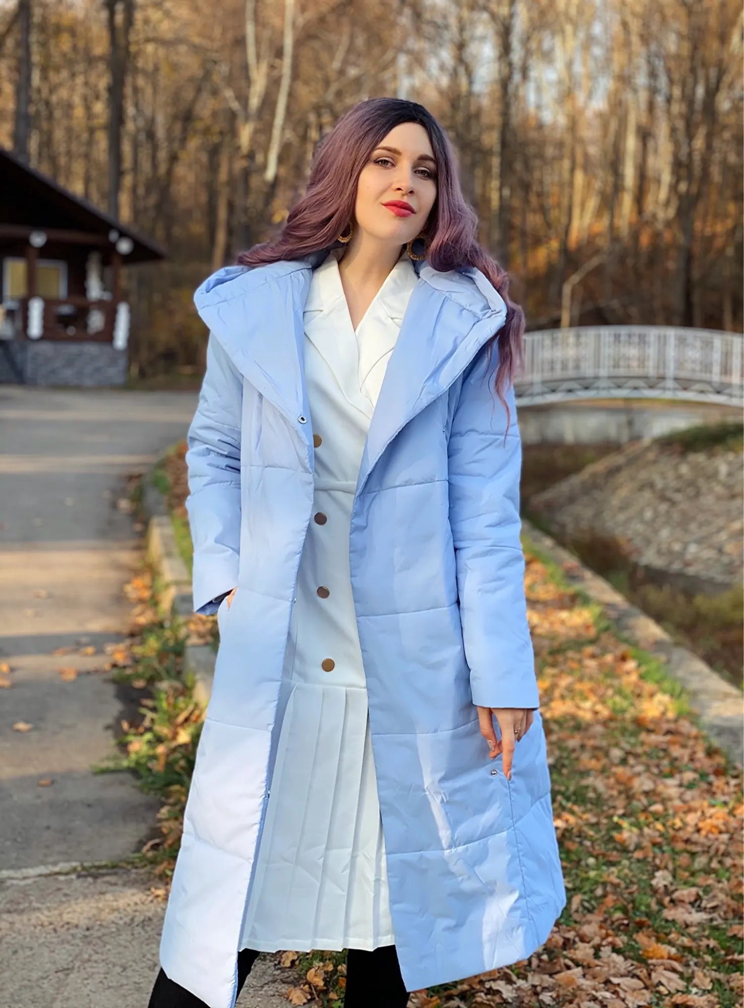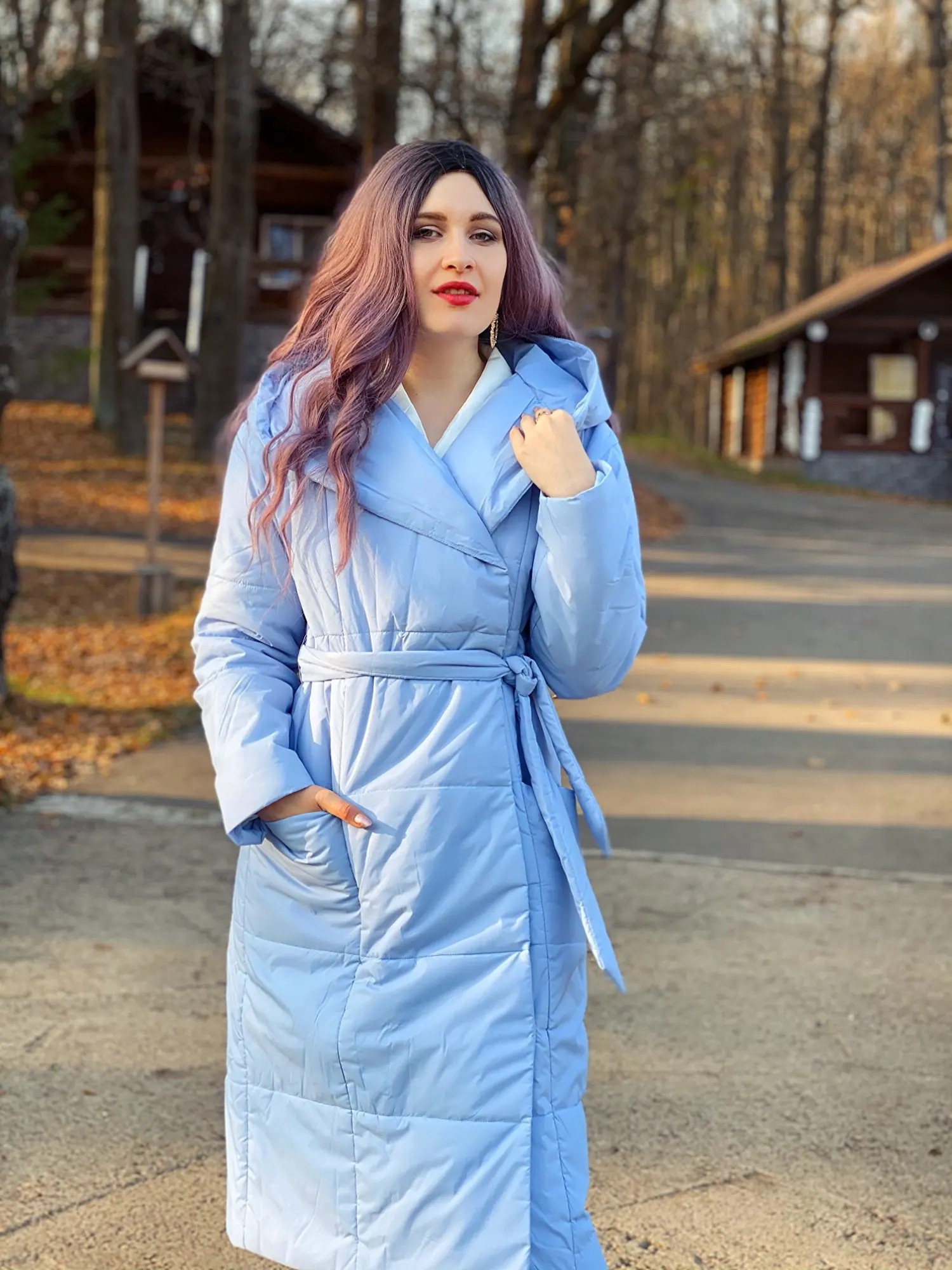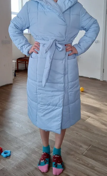 I ordered a second coat from this store. The first quilted, very much. I decided to buy something more. I plan to wear late in autumn, warm in winter. It came to Tyumen in 2 weeks. Bought with a coupon of 500 rubles (bring a friend) + coupon seller on sale 28.11. Sent me 1700 rubles. For such a price is excellent. Total both coats in 3 thousand cost. Sewing good, threads do not stick out anywhere. There are no pritenses on the quality. I wanted a dark blue color, initially the seller's photo was black, when there were reviews and real photos ordered. The style is not suitable for everyone. Because of the double layer in front, it seems that you are thicker. I will wear without a belt, it creates an additional volume pulling. Of course, young slender girls should not worry. My parameters are 94-78-98. Size M sat on the shoulders perfectly, in volume too, even with a jacket there is still a place. The neck is open, but with a snood or a warm scarf is excellent. The bottom button is unfastened and pulls a little. That's why it's better without her. In general, the impressions are good. Recommend