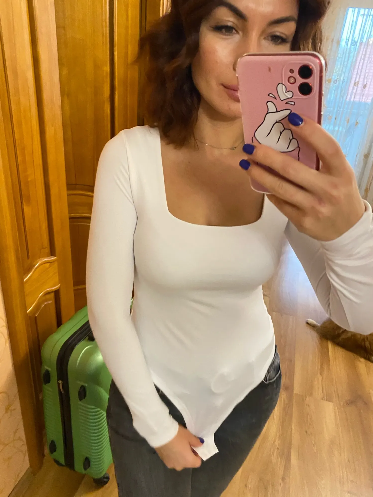 Super bodiki, I did not even expect this. Although polyester, but very pleasant to the body. In the chest area there is a lining, so it does not shine through. But better on the bodice with a cup (I measured White on the topic and it did not turn out very beautiful). Inside warmed, due to what they are very cozy even in the cold. Black looks especially cool. In a word I recommend.